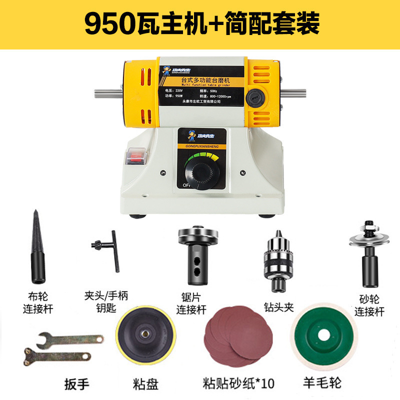 • 950와트 메인 머신 + 왼쪽 연삭 휠 + 오른쪽 드릴 척