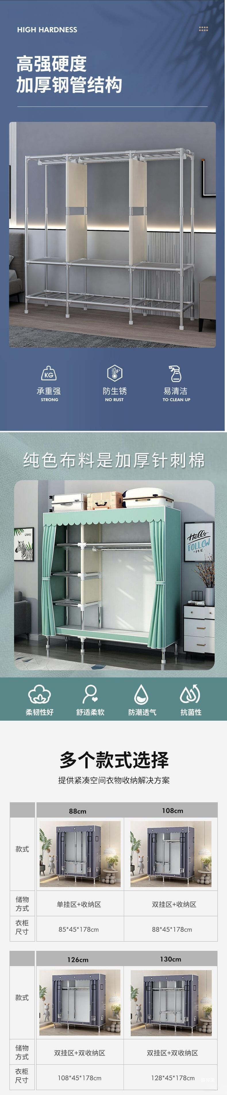 앵글 스틸 기숙사 옷장 간단한 가정용 침실 조립 천 옷장 임대실 강철 프레임 두꺼운 옷장 제조업체 제품스토어 가기