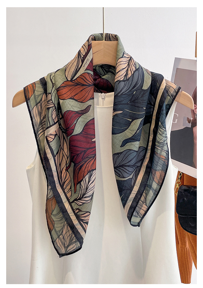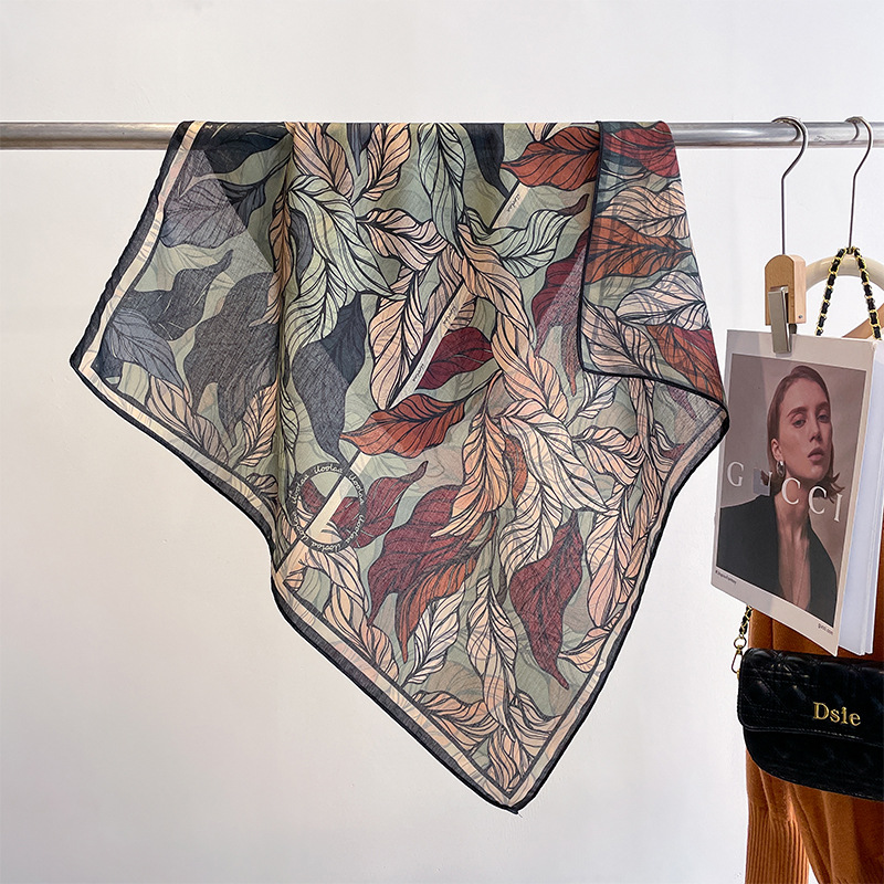 봄과 여름 문학과 예술적인 나뭇잎 기질 작은 사각형 스카프, 고급 패션 복고풍 면 및 린넨 실크 스카프, 여성용 장식 스카프 및 숄