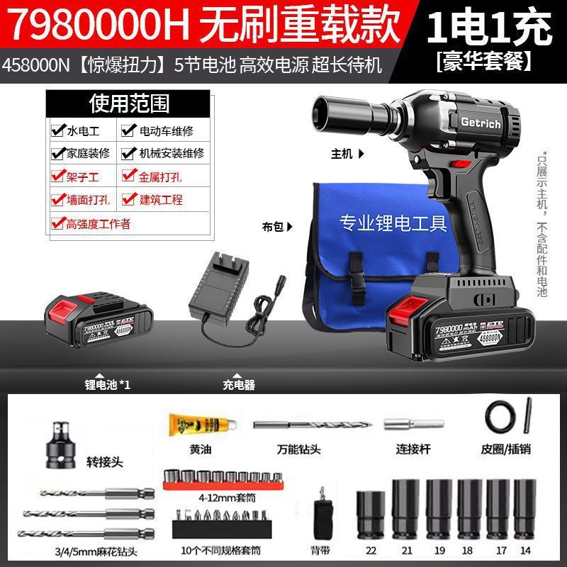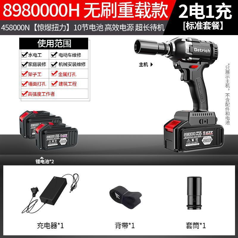Getrich 대형 토크 브러시리스 전기 렌치 리튬 배터리 충격 렌치 발판 목공 자동 수리 충전 공기 대포스토어 가기