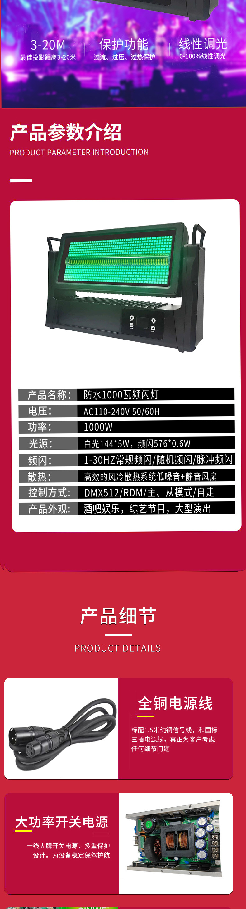 1000w 방수 스트로브 라이트 야외 공연 고출력 문화 및 관광 조명 엔지니어링 조명 이동 헤드 스트로브 라이트 재고 있음