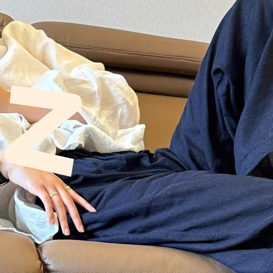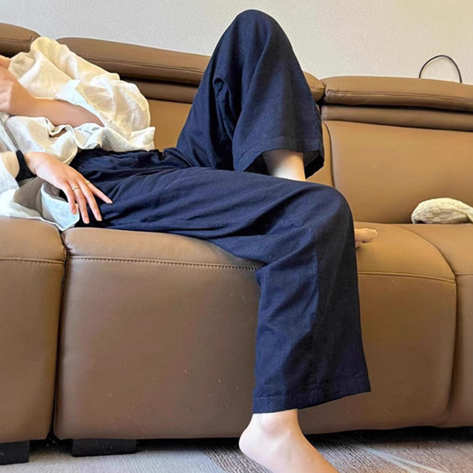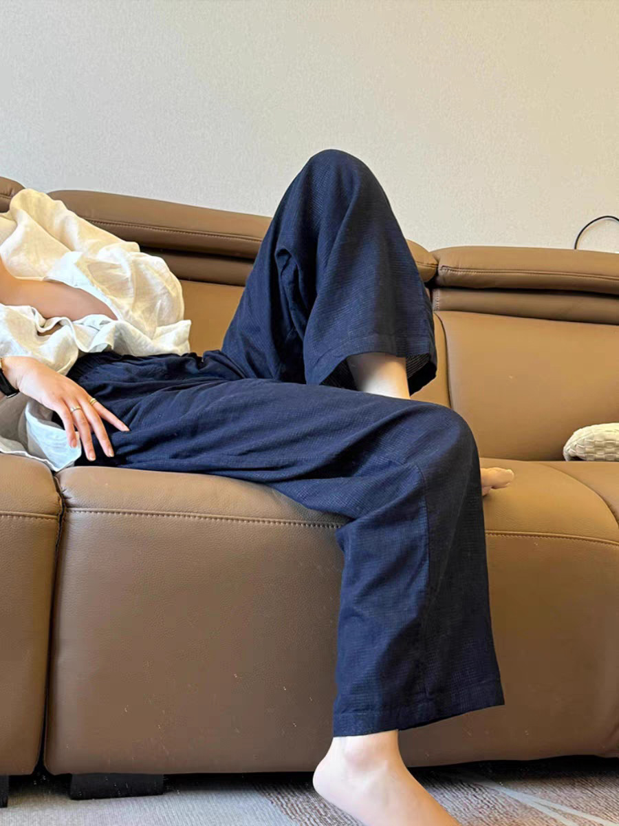 CHAO 클래스 추천! 비와 이슬 리넨 ~ 여름 얇은 네이비 캐주얼 바지 여성의 부드러운 피부 친화적 인 스트레이트 바지