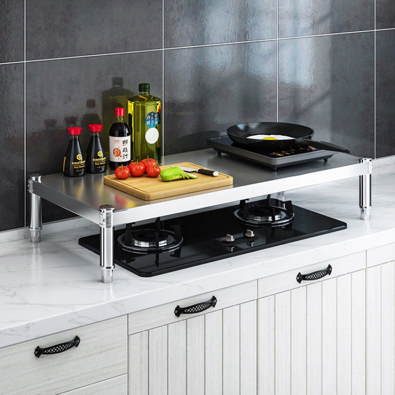 스테인레스 스틸 주방 랙 단일 층 전자 레인지 저장 랙 오븐 바닥 1 층 조미료 랙 포트 보울 랙
