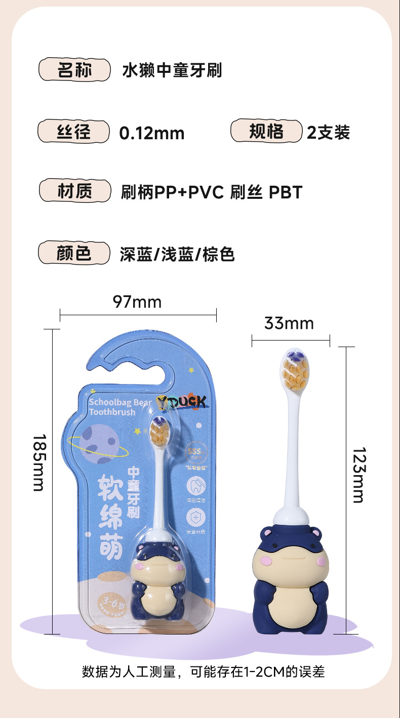 Yunrou Wan Mao 어린이 칫솔 0-3-6 세 싱글 팩 만화 수달 아기 부드러운 헤어 칫솔 재고스토어 가기