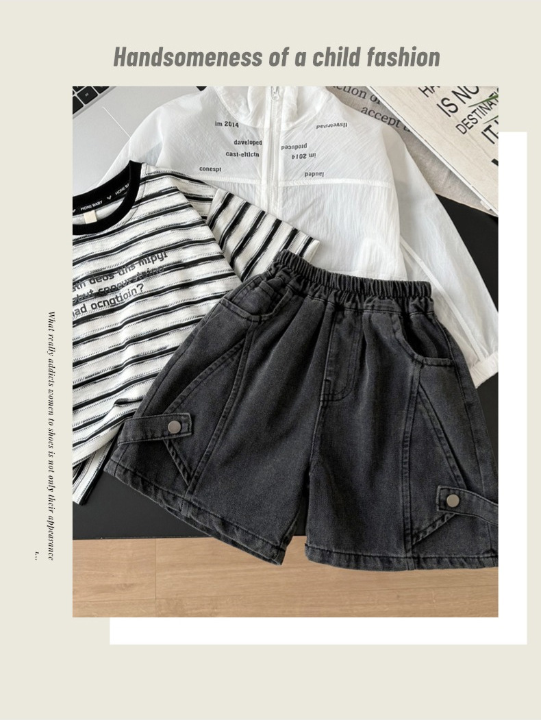 소년 바지 여름 2025 새로운 어린이 더피 잘 생긴 반바지 소년 잘 생긴 아이들의 느슨한 데님 트렌디 한 바지스토어 가기