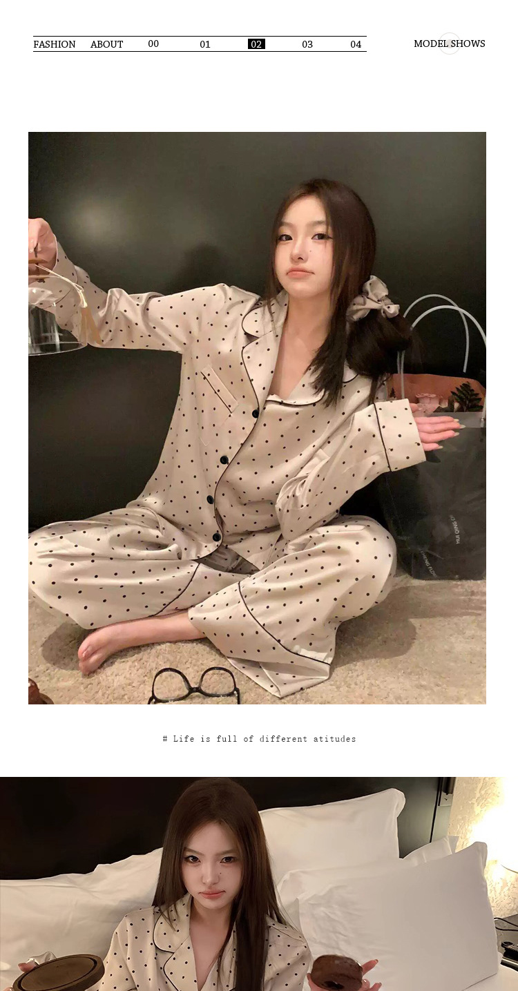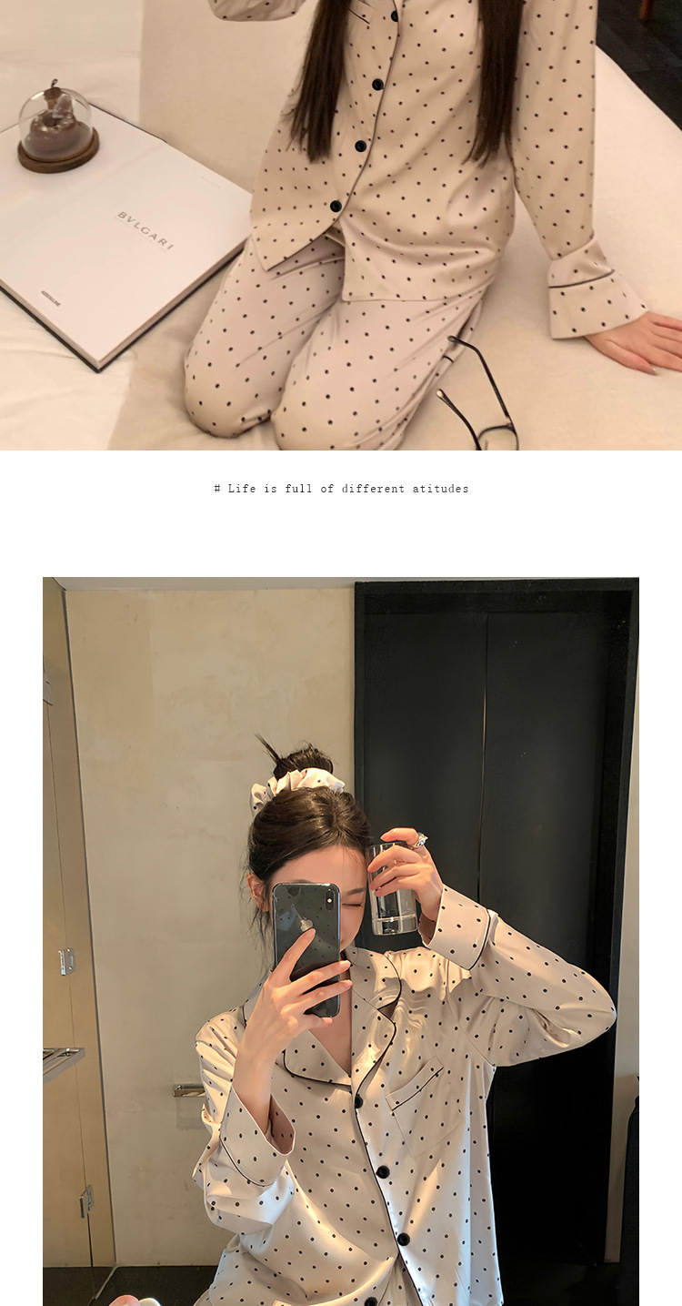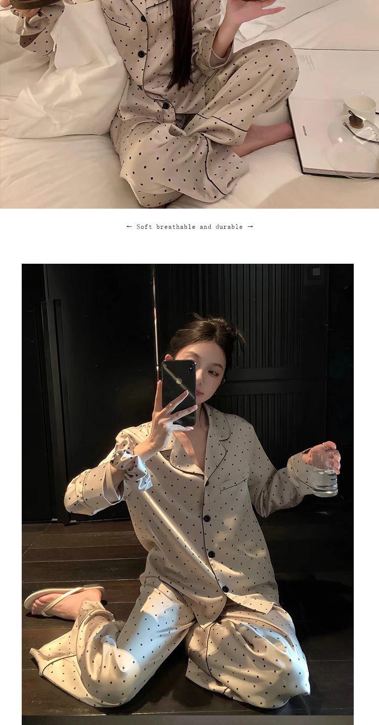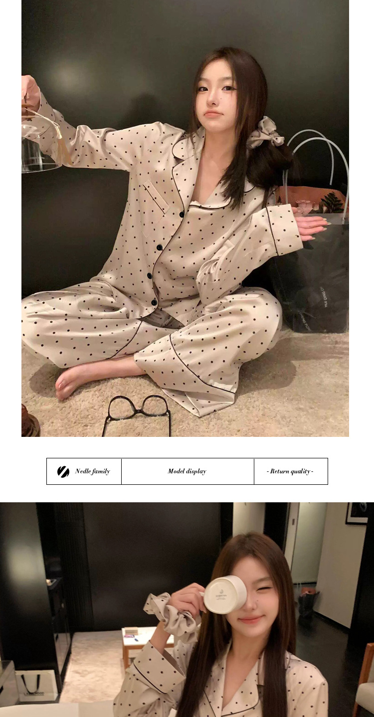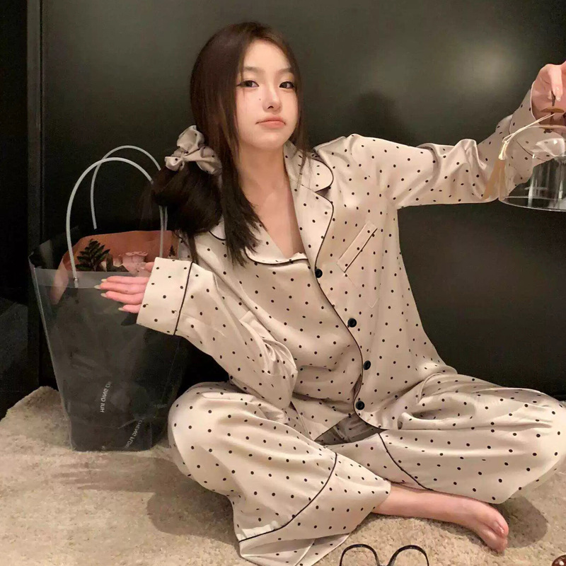 2025 새로운 봄, 여름 잠옷 여성 카디건 긴팔 가정 의류 얼음 실크 캐주얼 인터넷 연예인 스타일 한국어 버전스토어 가기