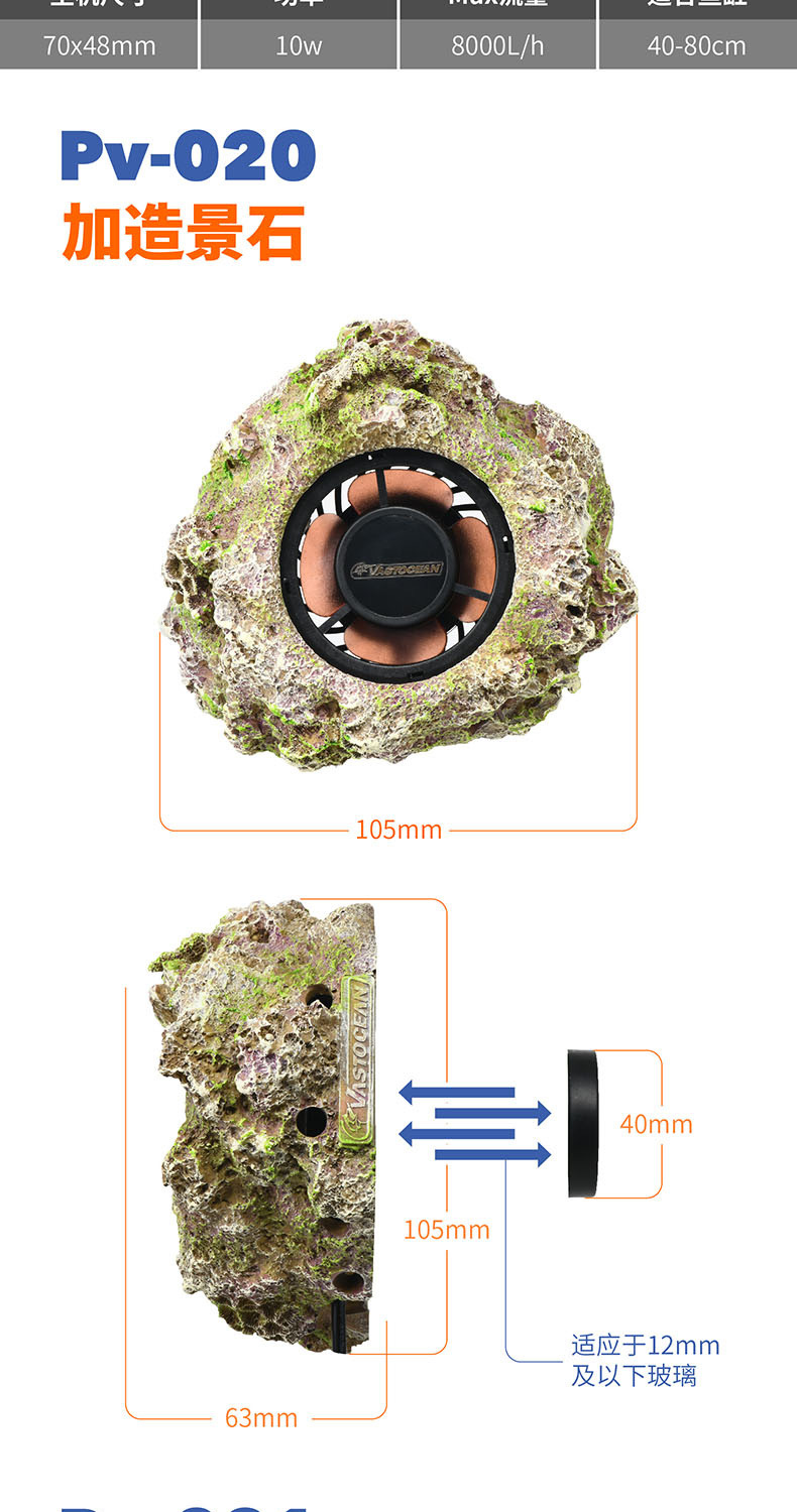 • VASTOCEAN PV-020 흐름 펌프 (흐름 장식 돌 보내기) 10W 8000L/H 40CM-80CM 수조