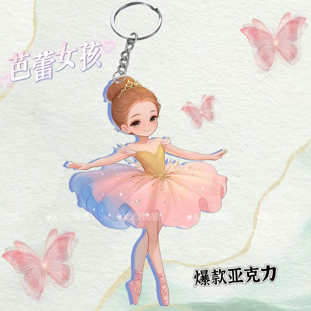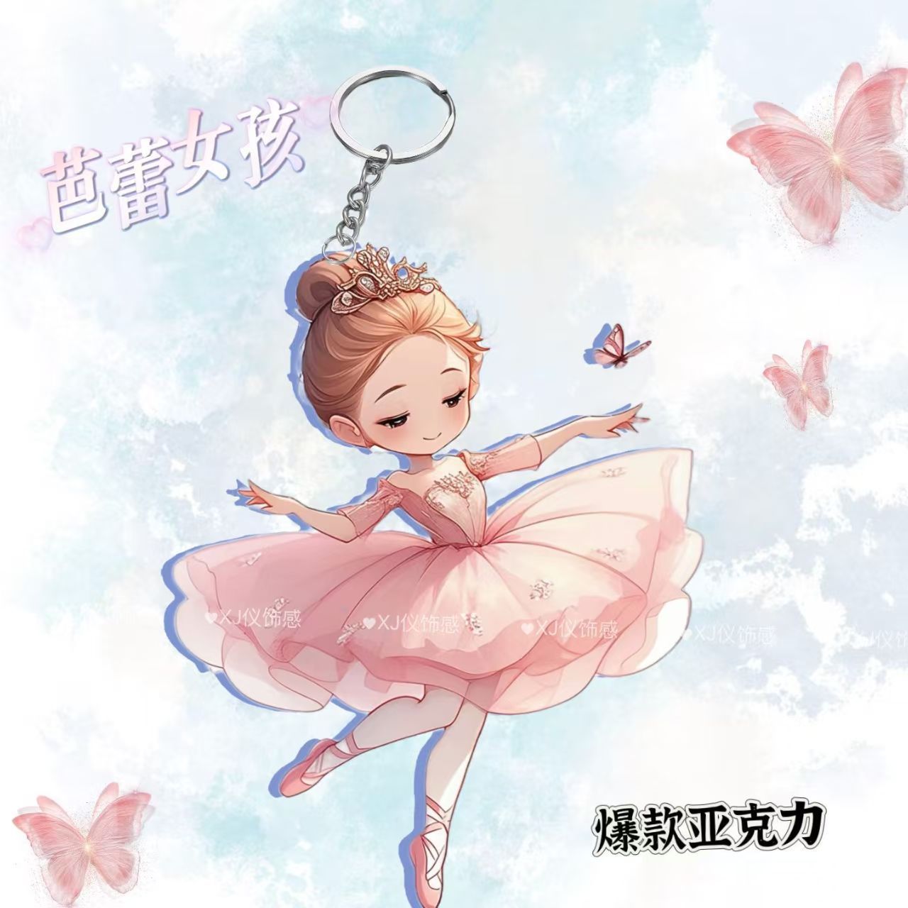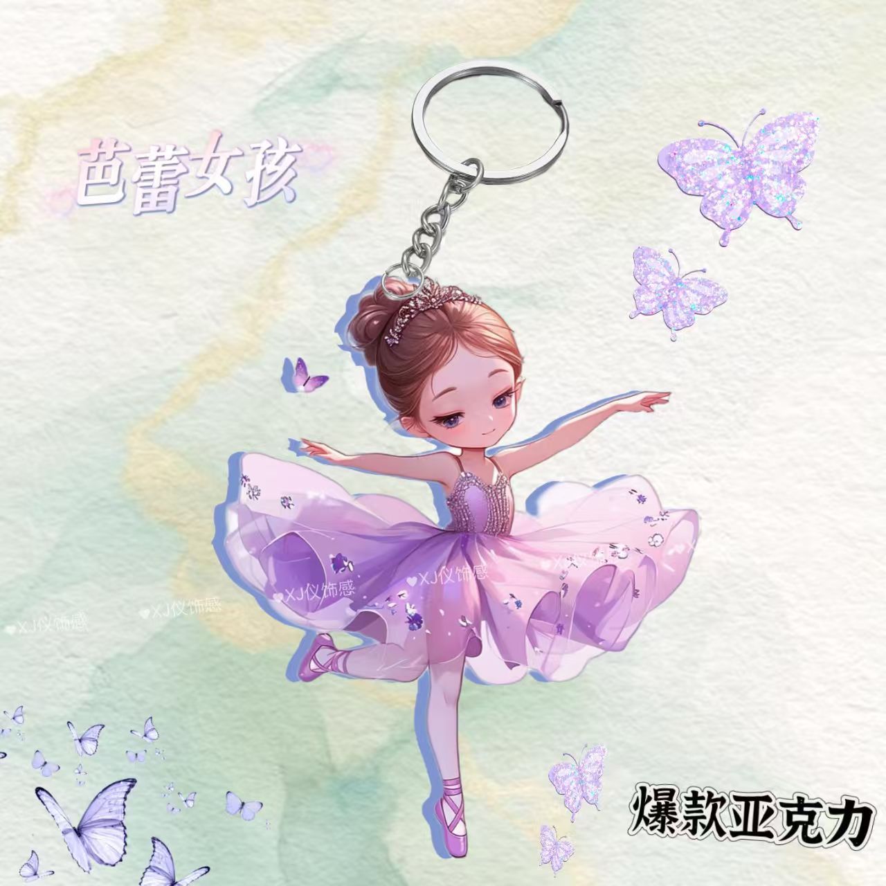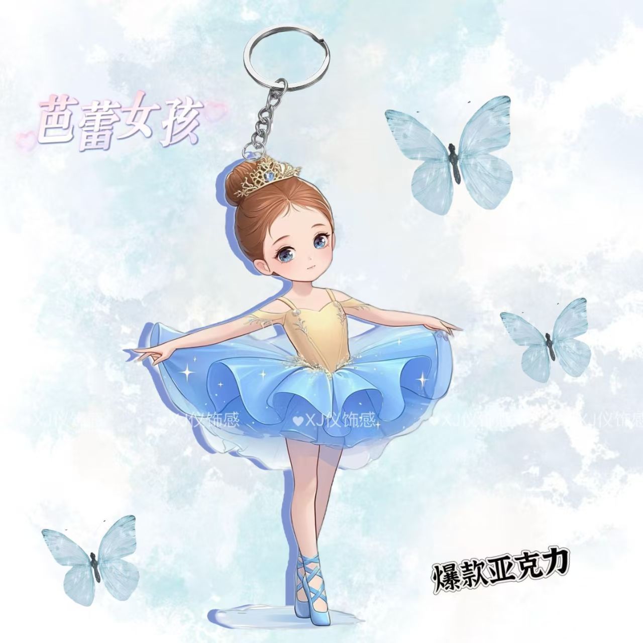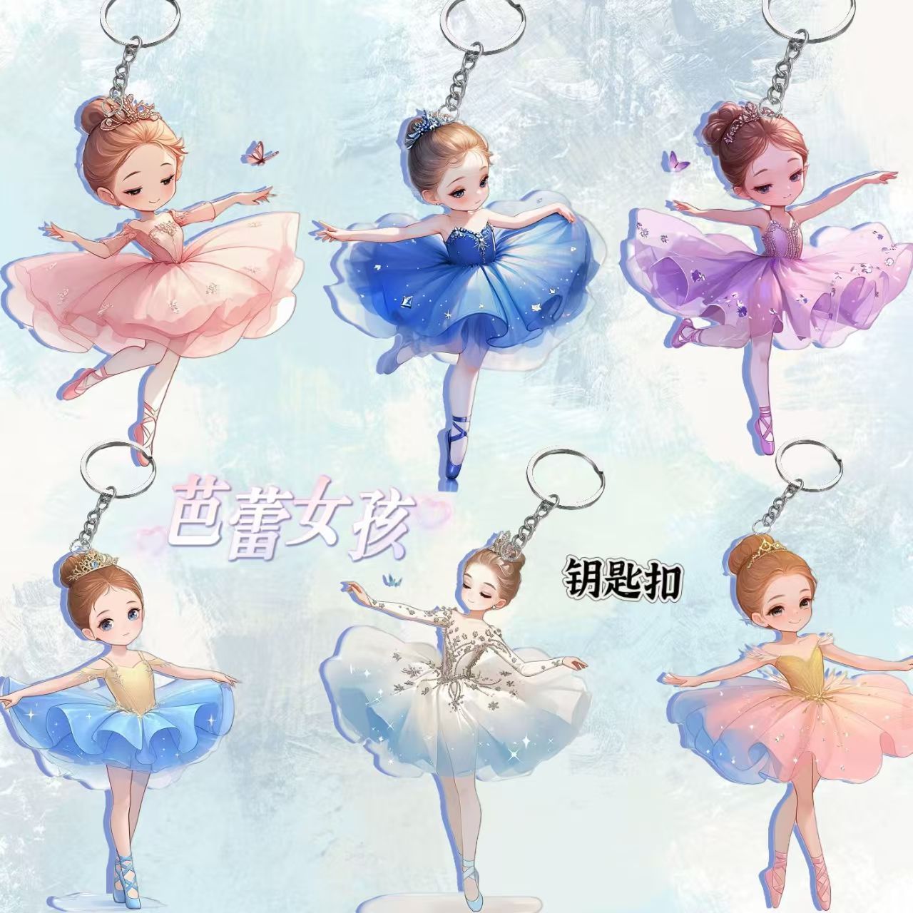 만화 댄스 원시 선물 소녀 펜던트 장식 창조적 인 발레 키 체인 선물 키 체인...스토어 가기