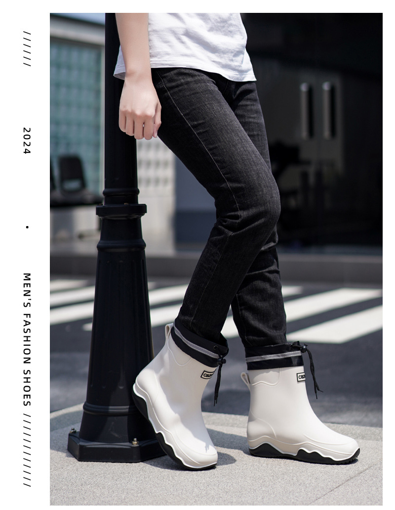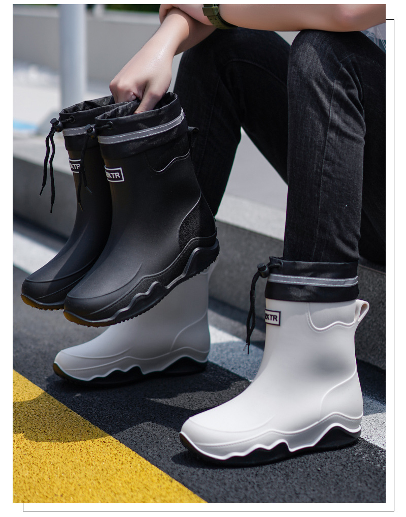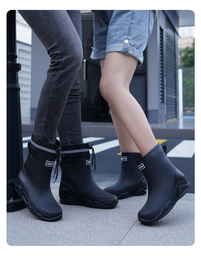 남녀공용 숏튜브 레인부츠, 미끄럼 방지 방수 한국형 레인부츠, 보온 고무신, 주방 작업용 커플 워터슈즈, 여성용 내마모성스토어 가기