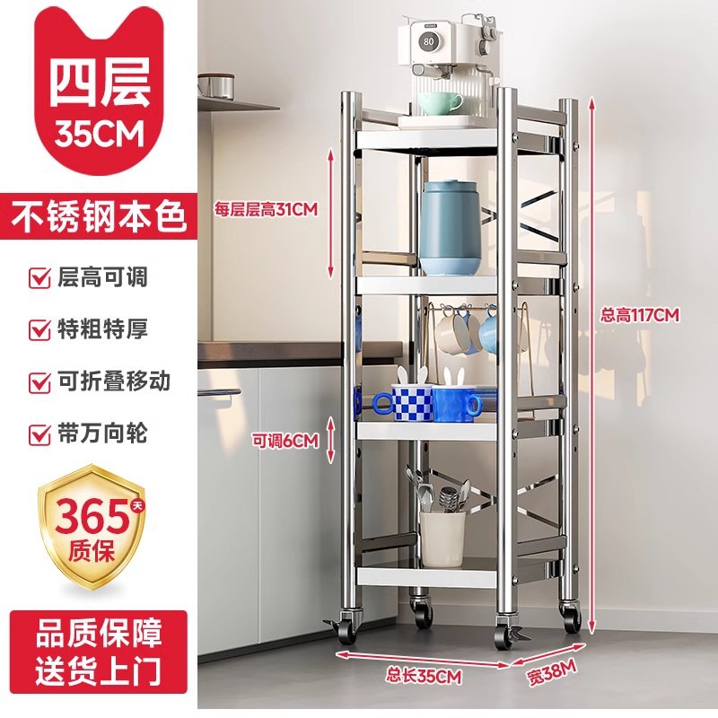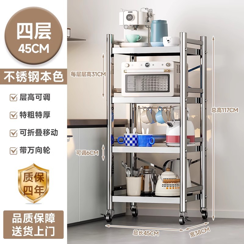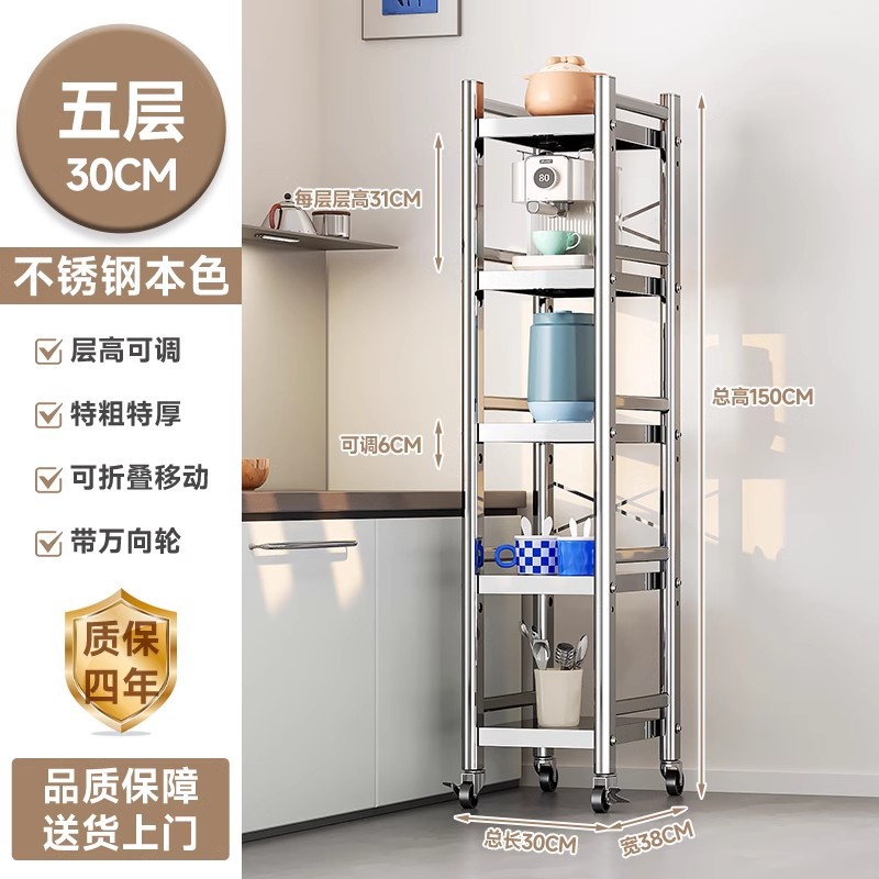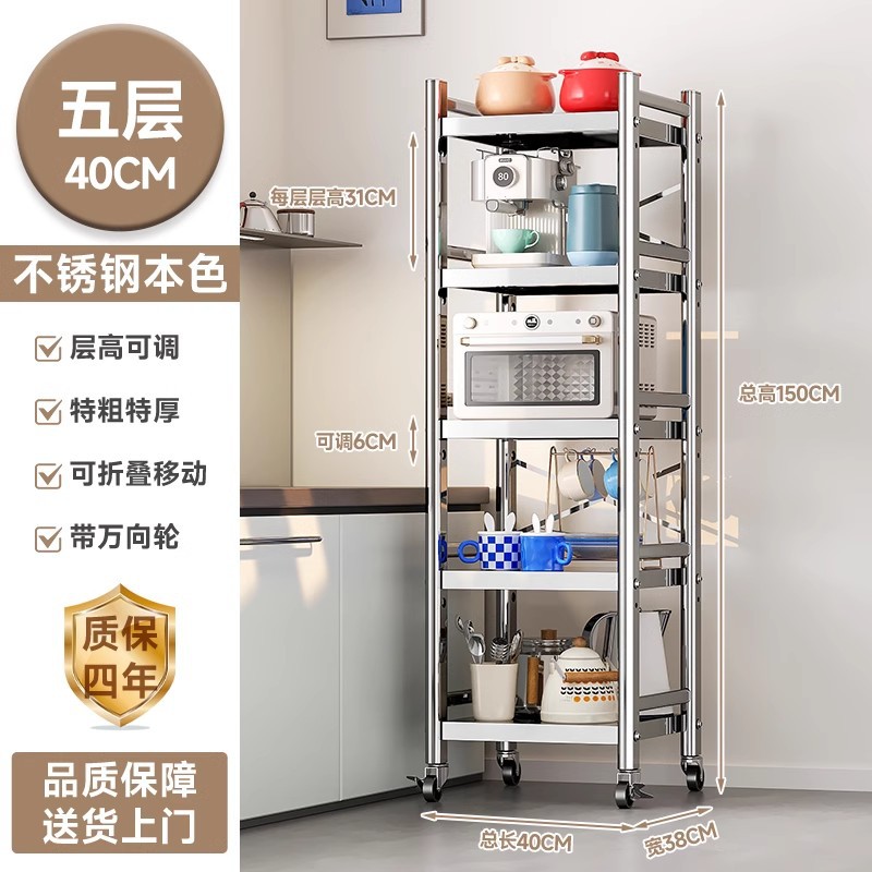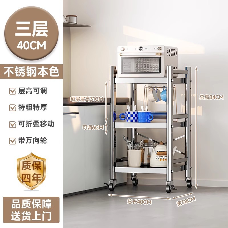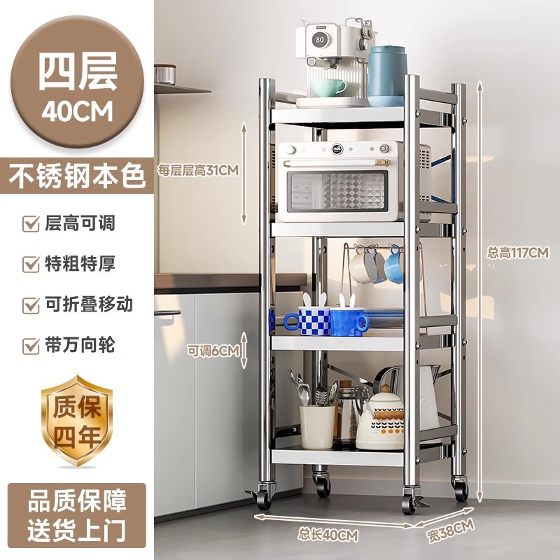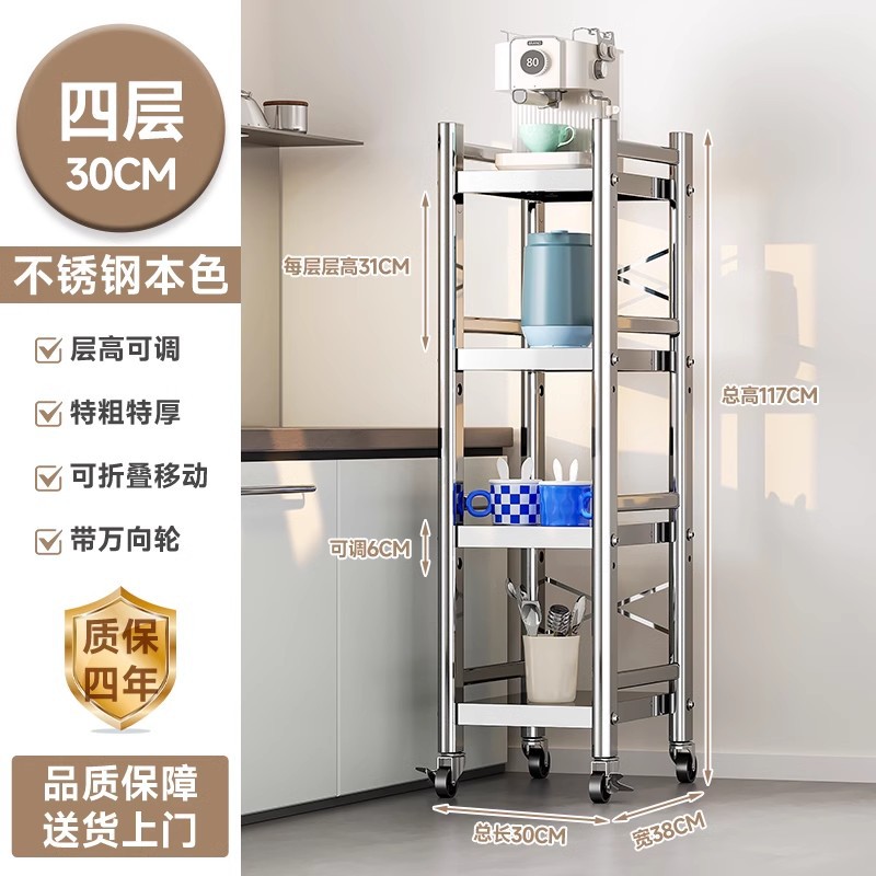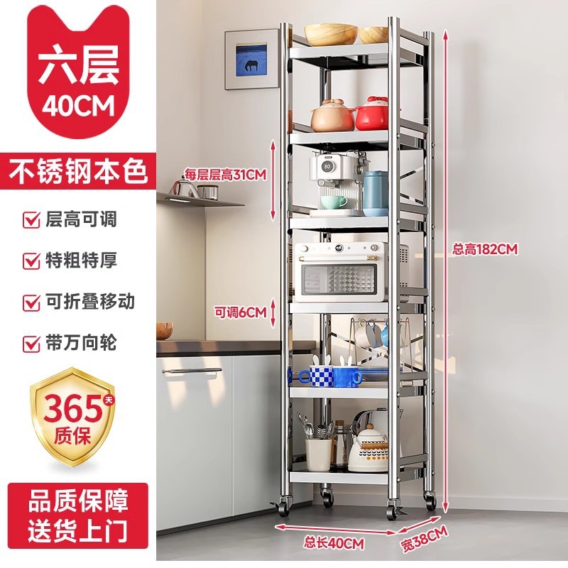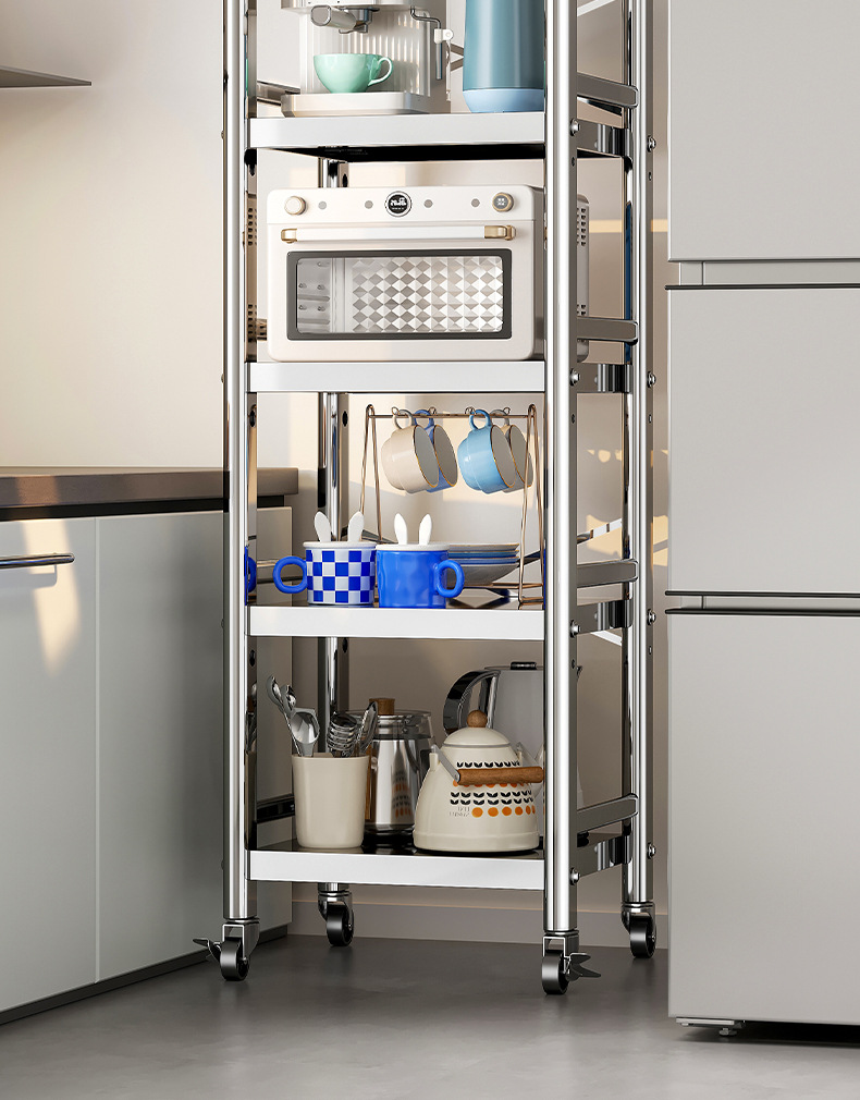 스테인리스 스틸 수납 선반, 바닥형 다층 틈새 수납 선반, 오븐, 전자레인지, 냄비 등 주방용품 수납 선반, 좁은 틈새용스토어 가기