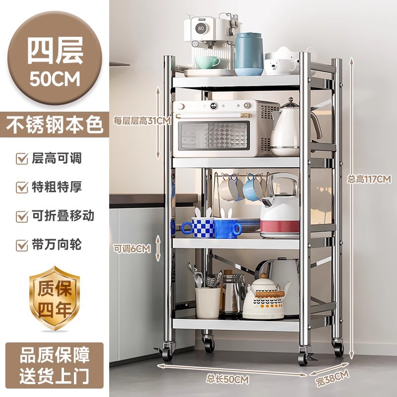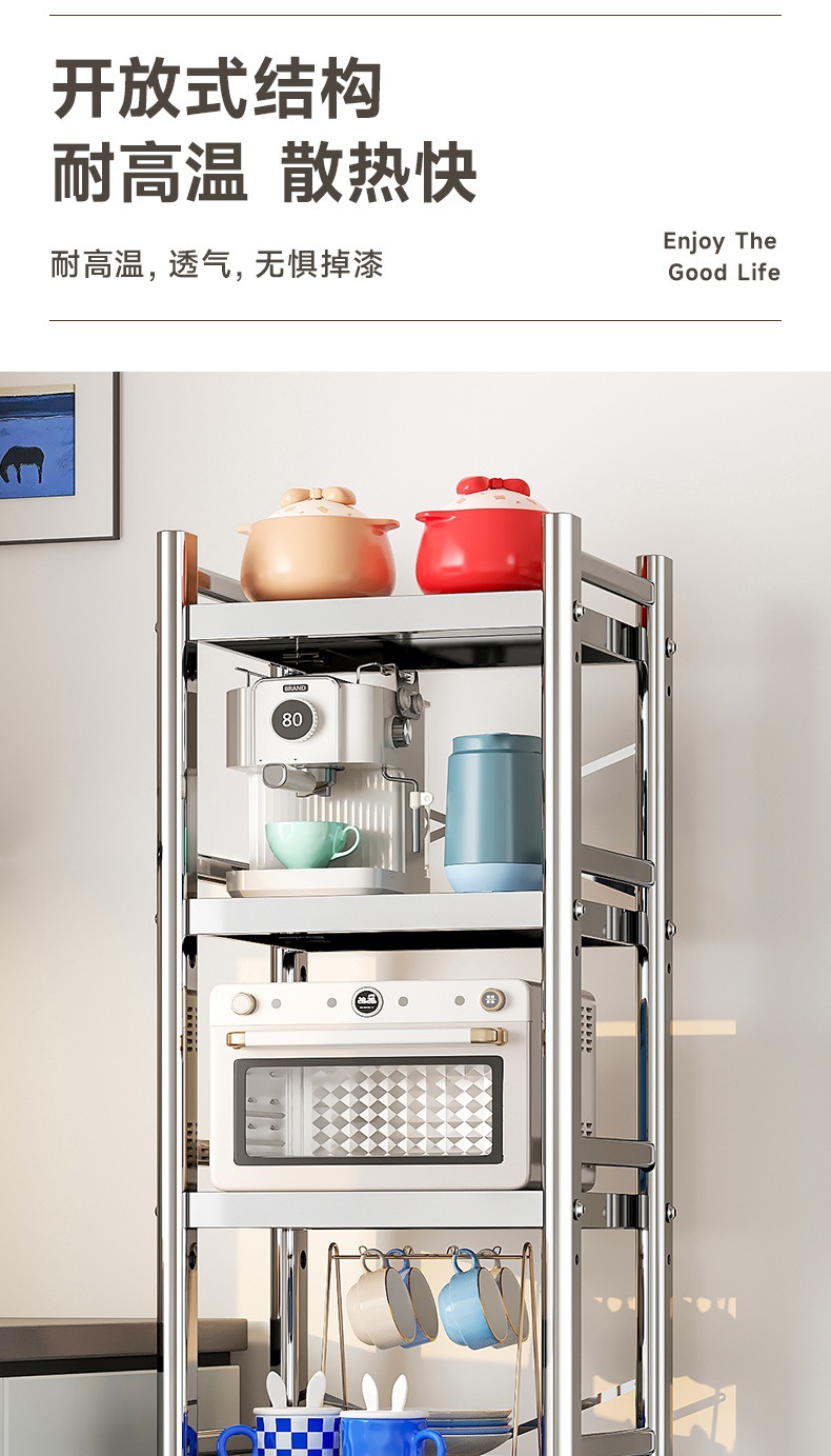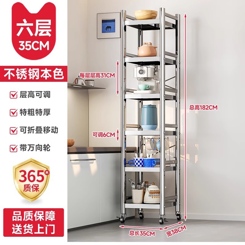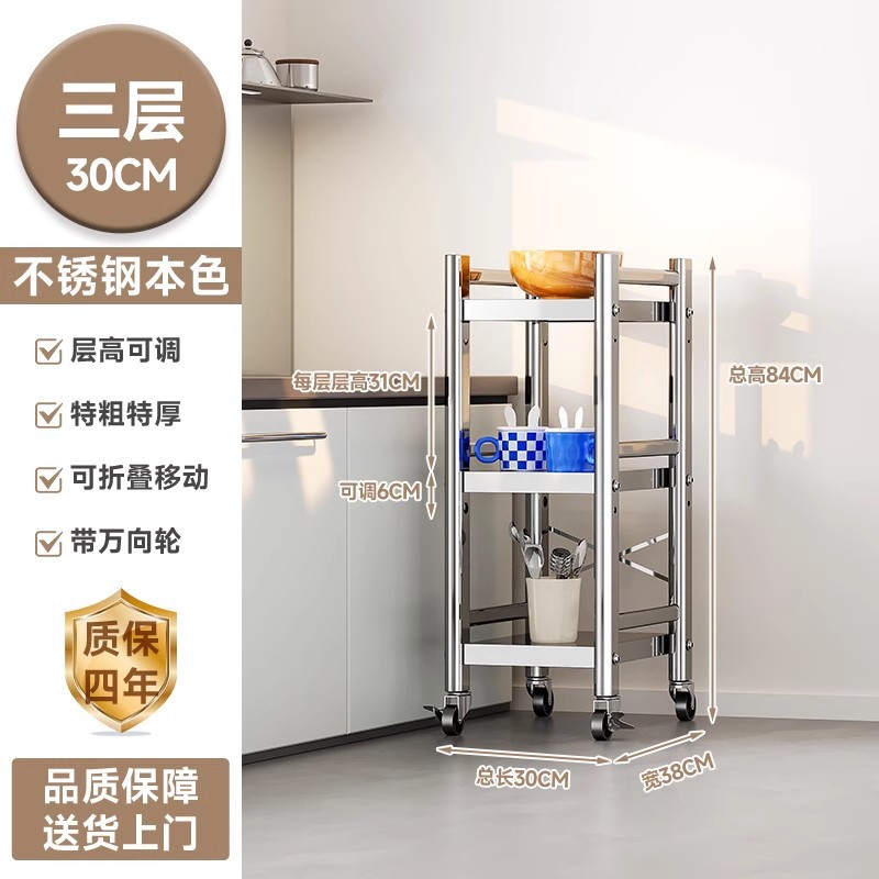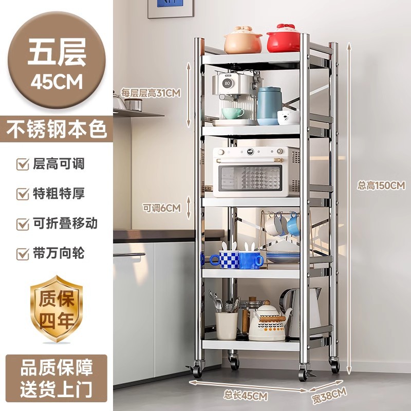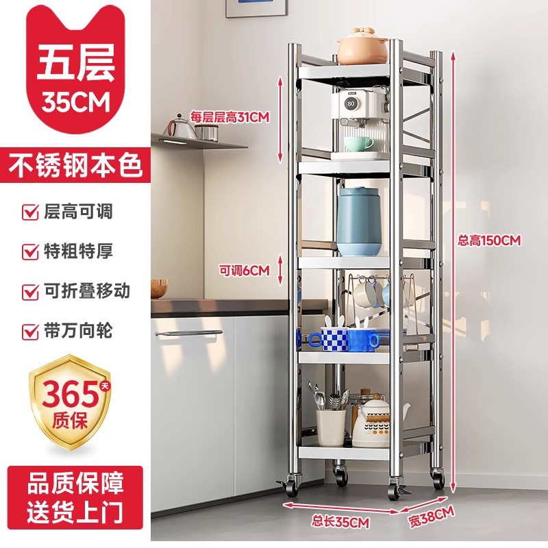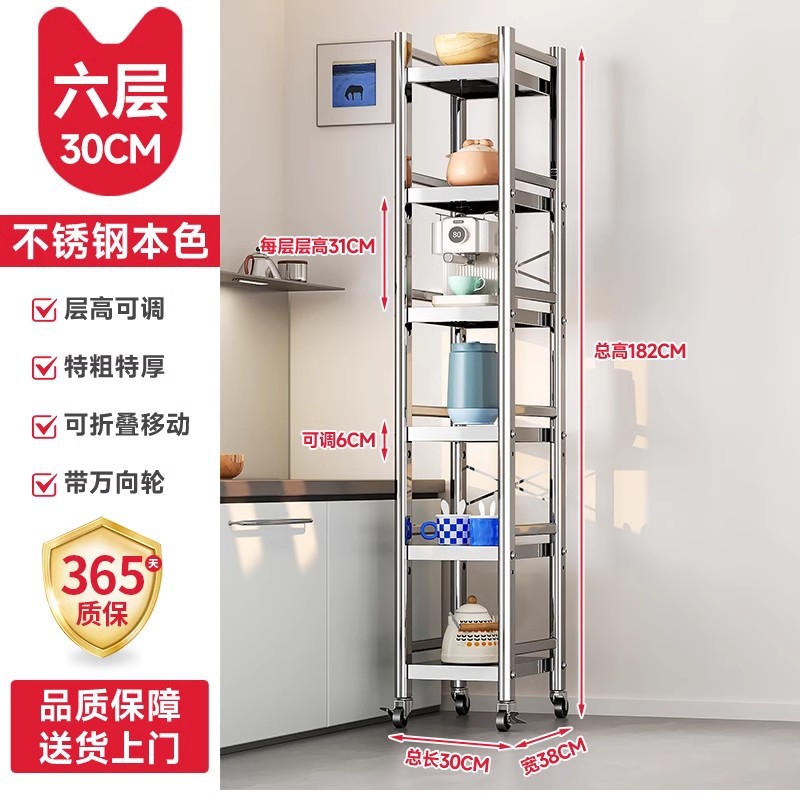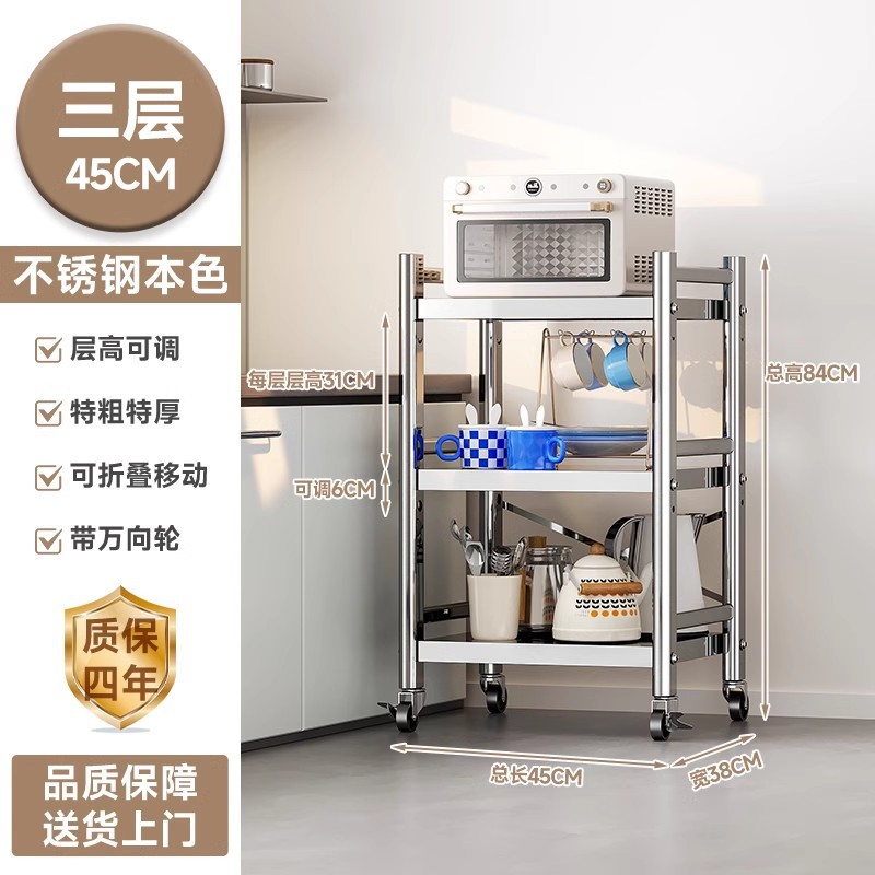 스테인리스 스틸 수납 선반, 바닥형 다층 틈새 수납 선반, 오븐, 전자레인지, 냄비 등 주방용품 수납 선반, 좁은 틈새용스토어 가기