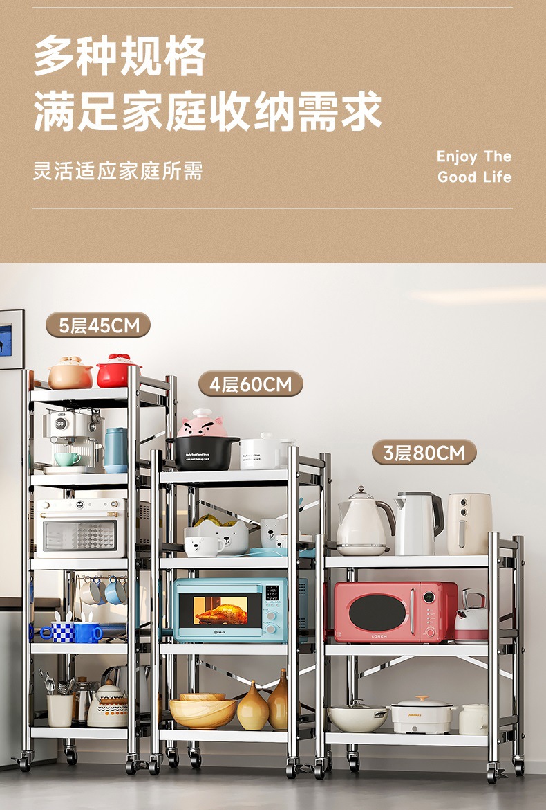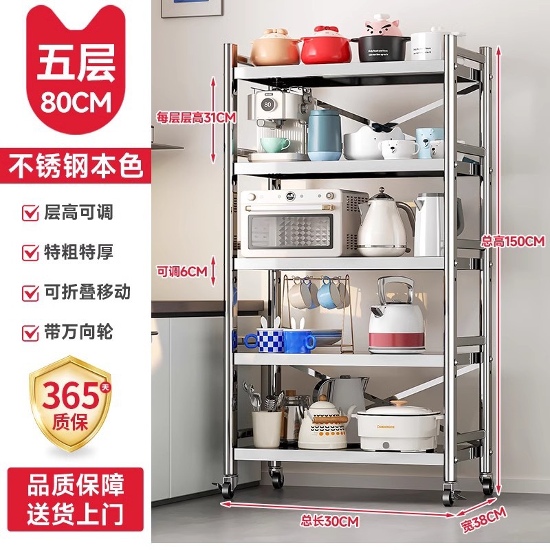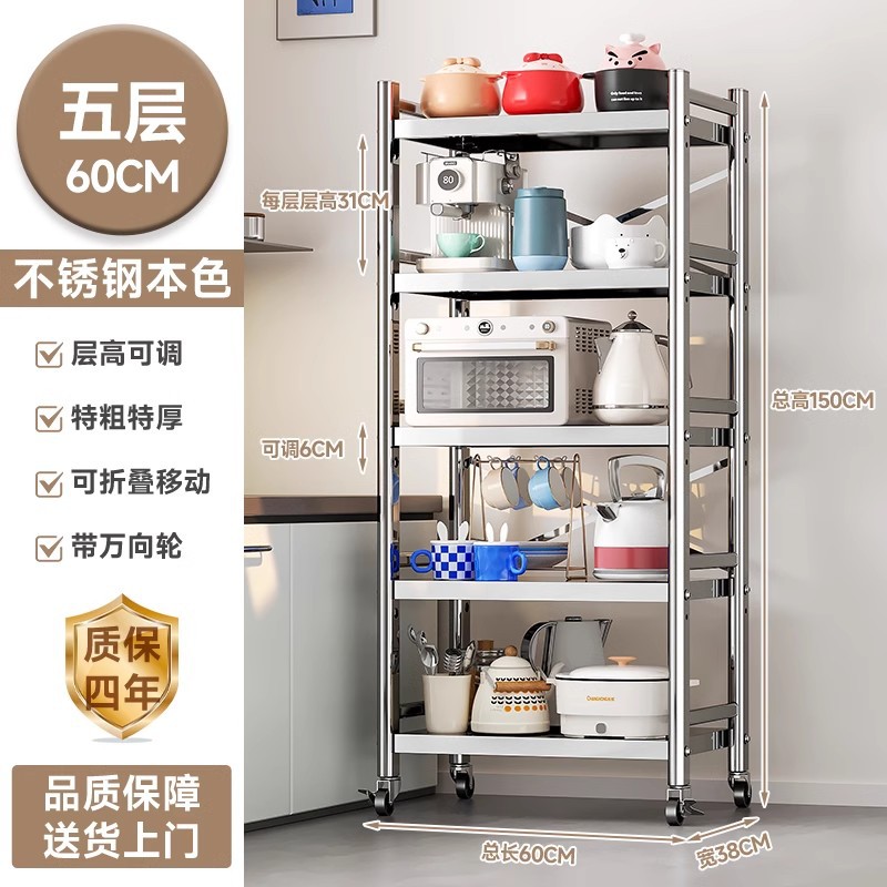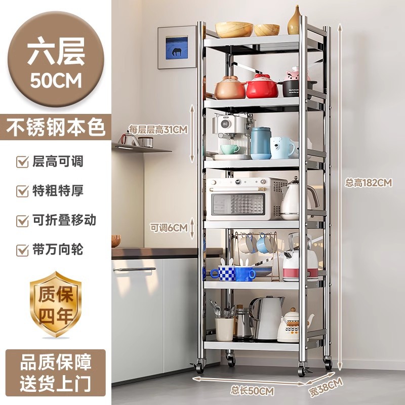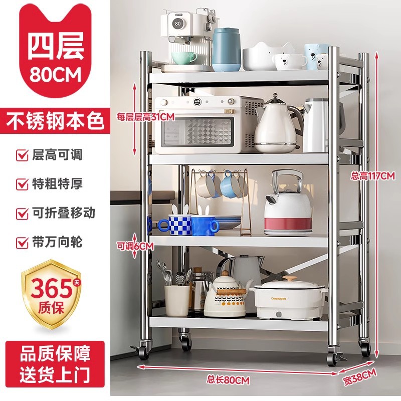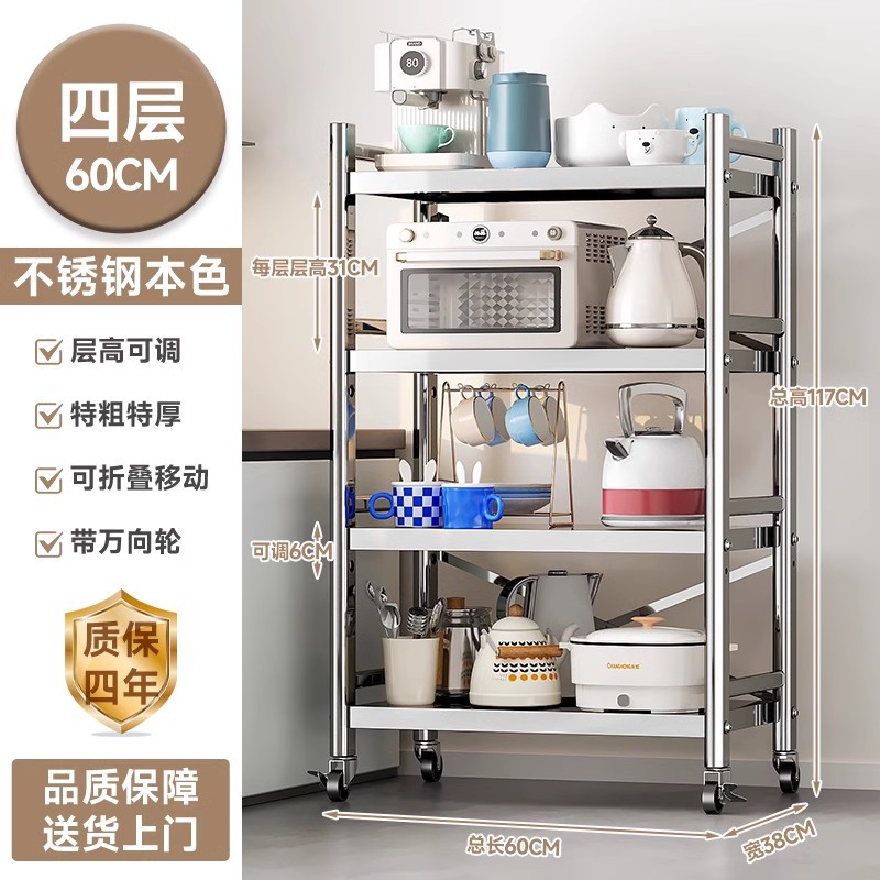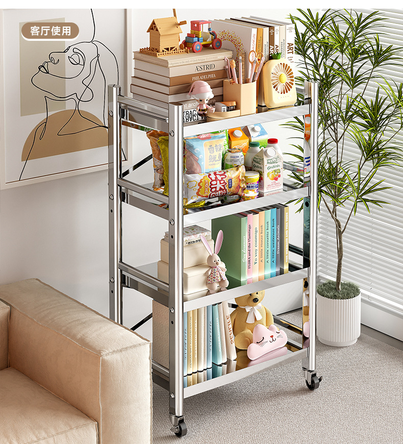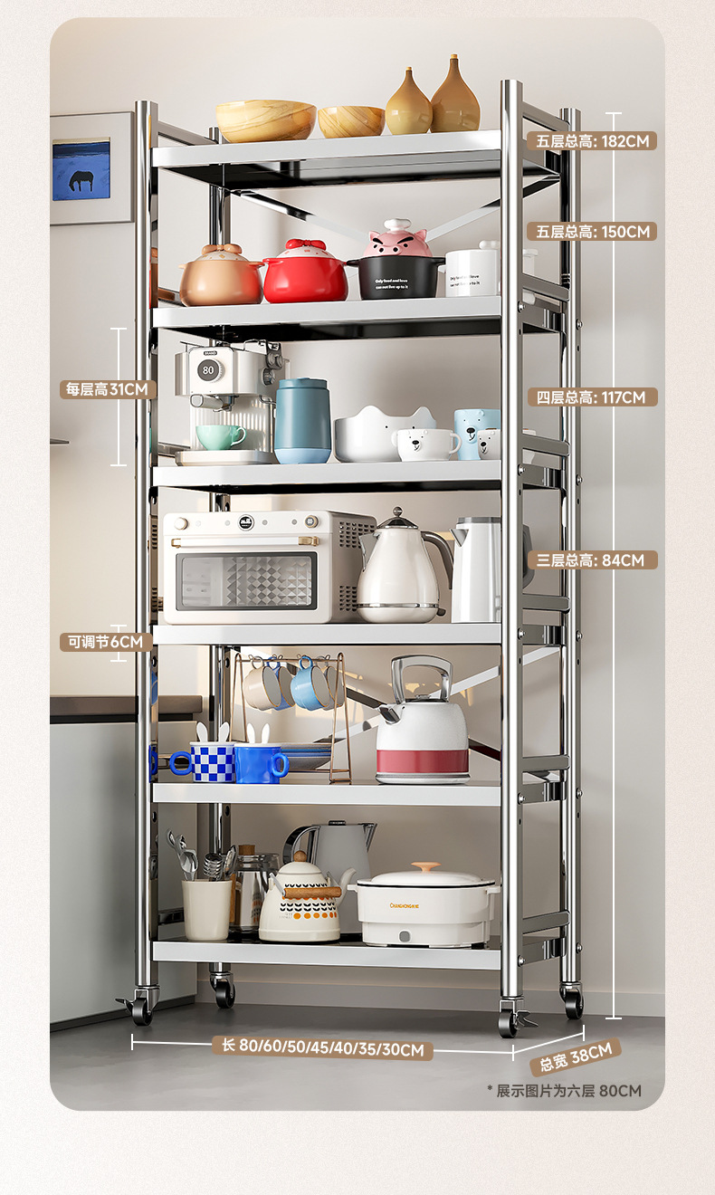 스테인리스 스틸 수납 선반, 바닥형 다층 틈새 수납 선반, 오븐, 전자레인지, 냄비 등 주방용품 수납 선반, 좁은 틈새용스토어 가기