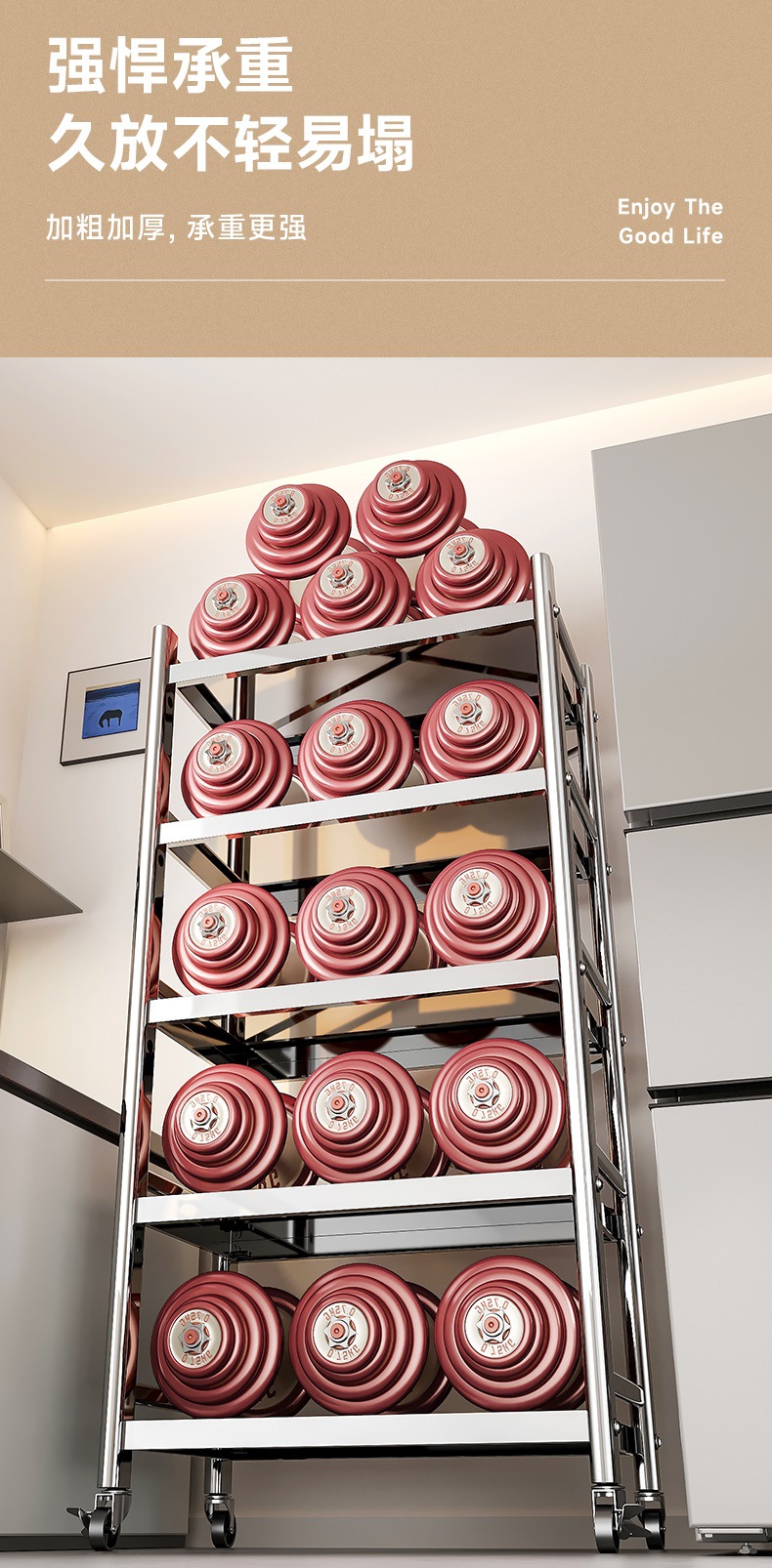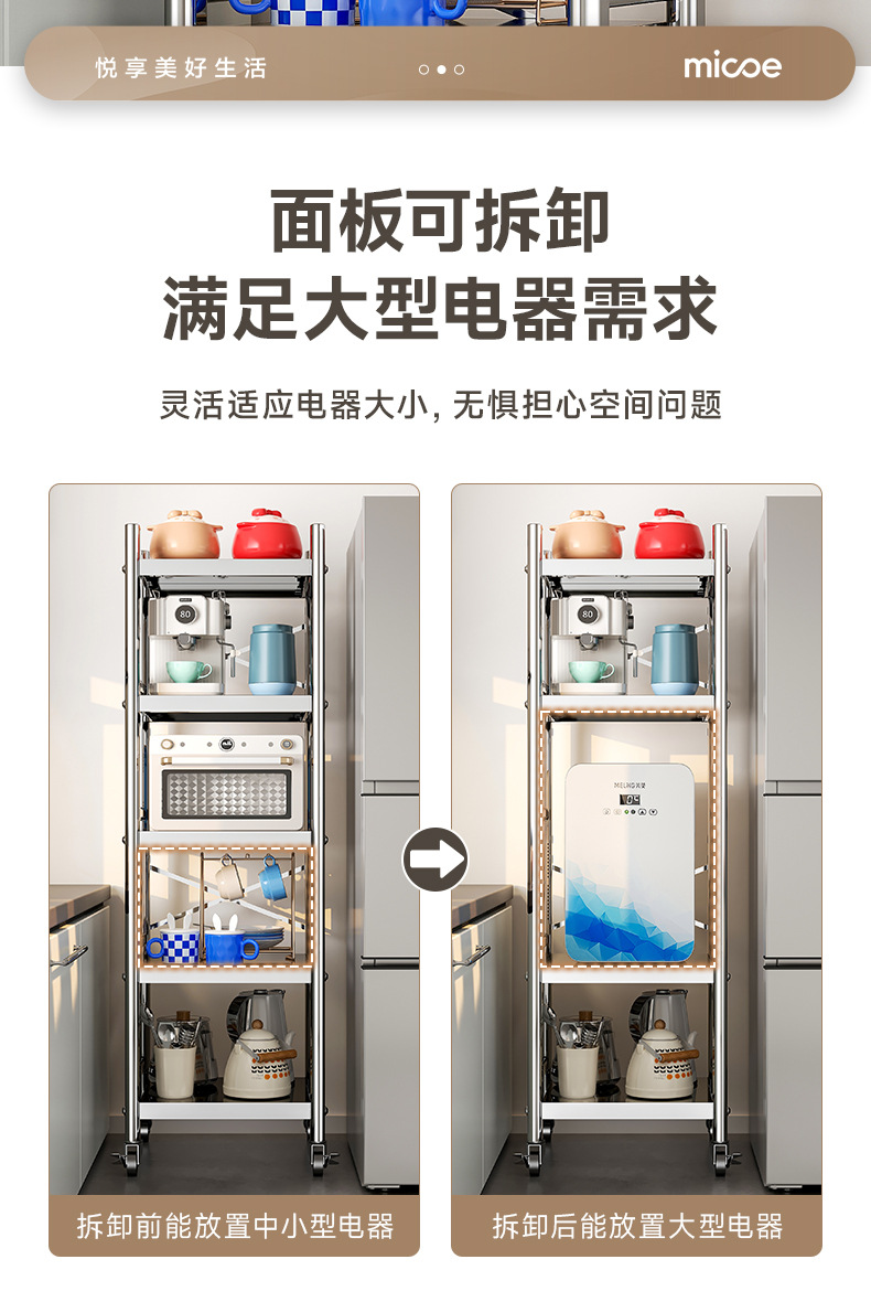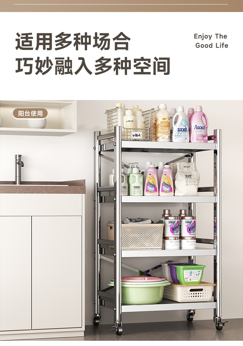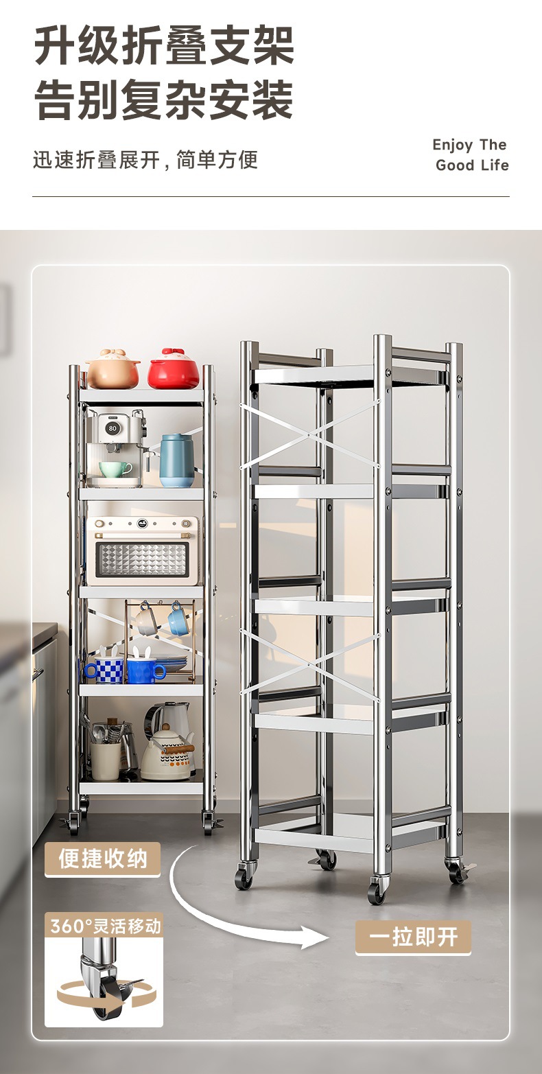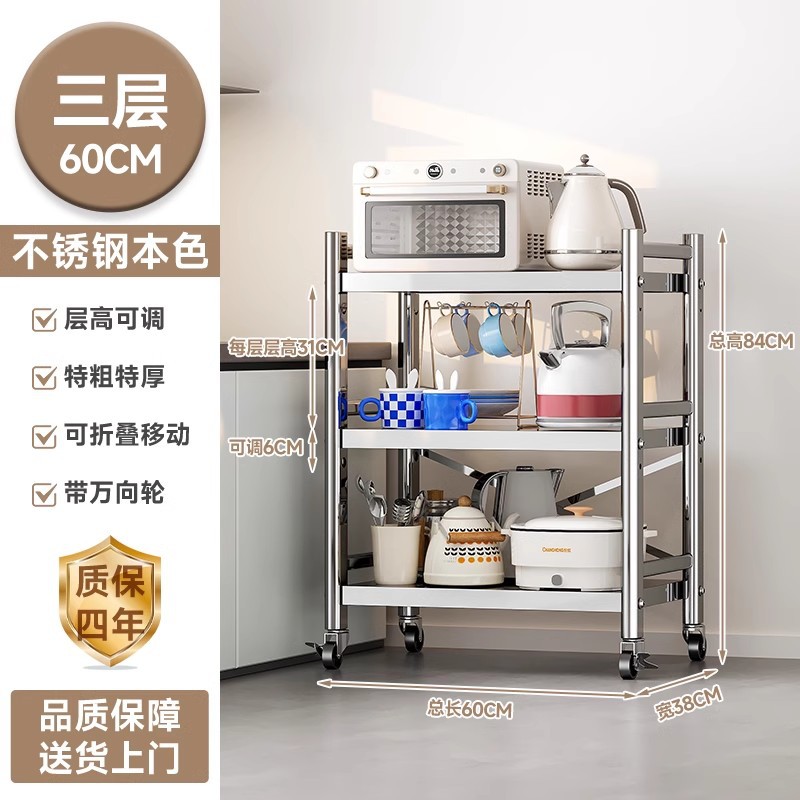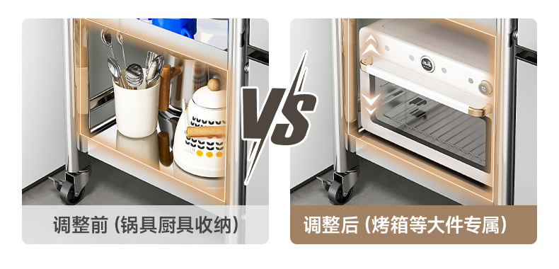 스테인리스 스틸 수납 선반, 바닥형 다층 틈새 수납 선반, 오븐, 전자레인지, 냄비 등 주방용품 수납 선반, 좁은 틈새용스토어 가기