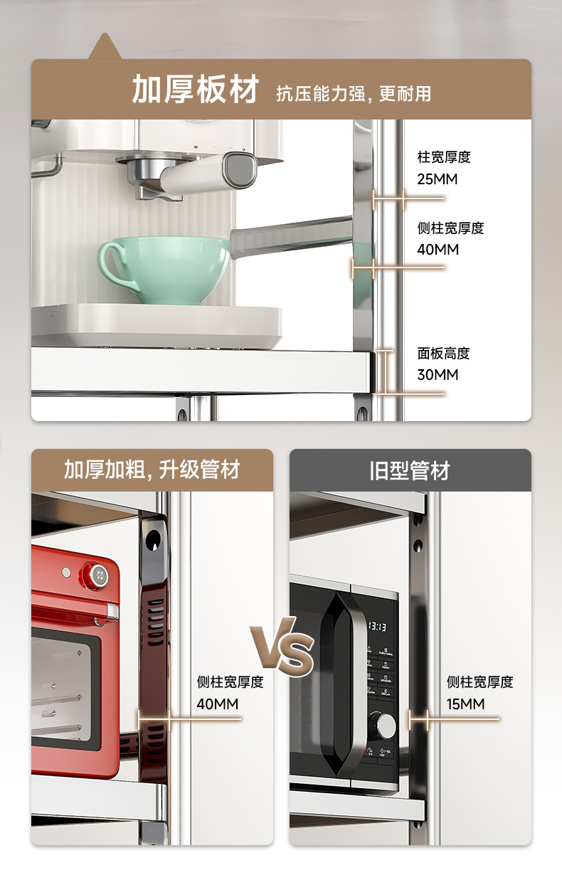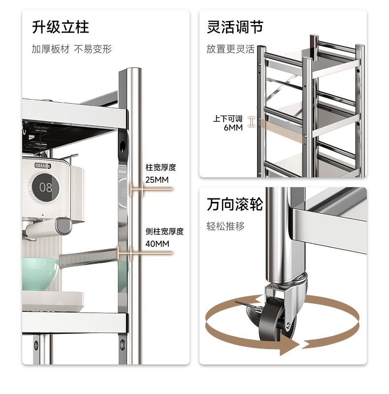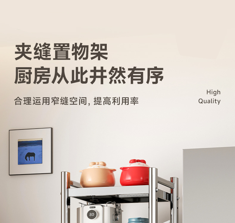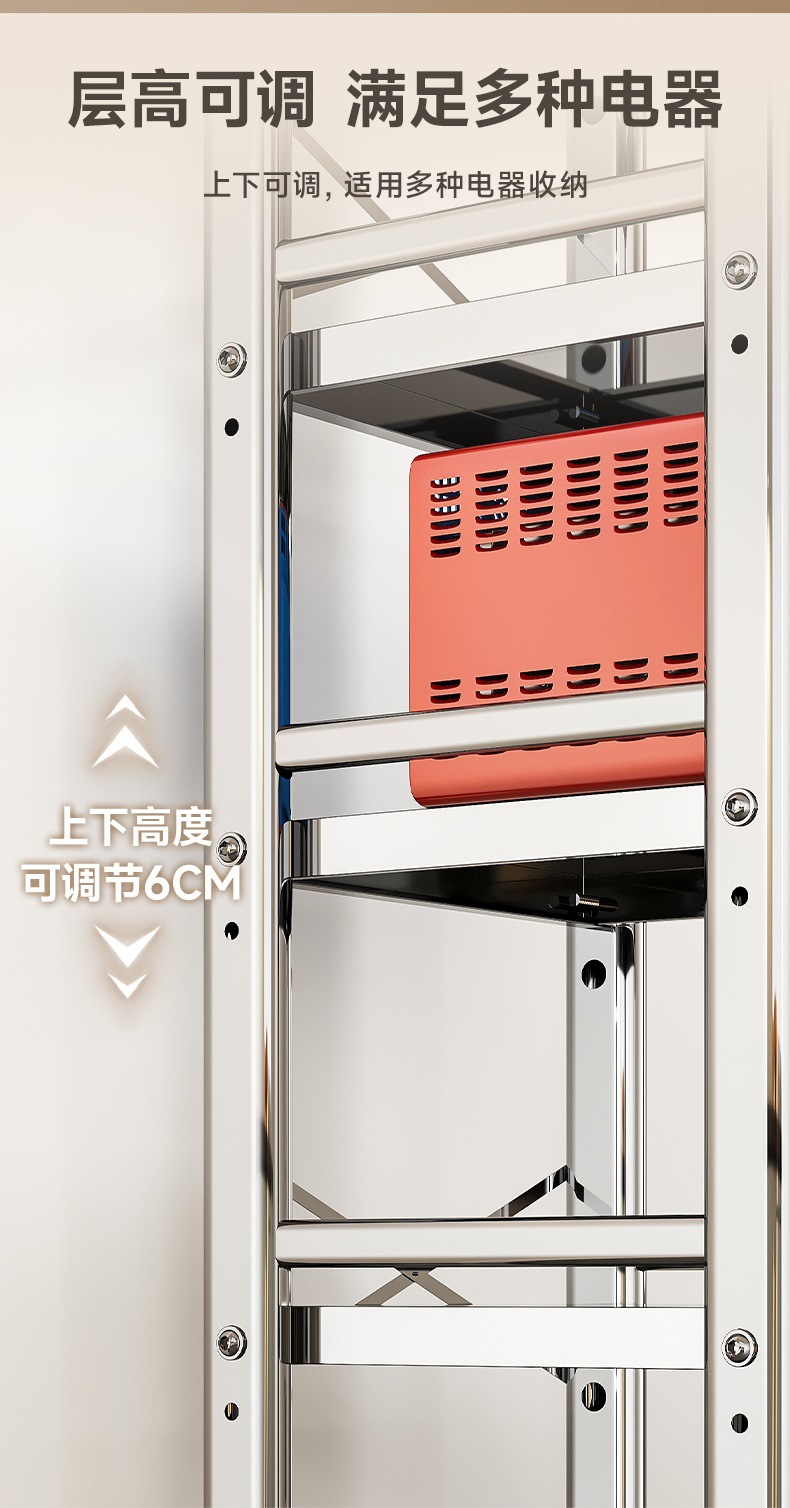 스테인리스 스틸 수납 선반, 바닥형 다층 틈새 수납 선반, 오븐, 전자레인지, 냄비 등 주방용품 수납 선반, 좁은 틈새용
