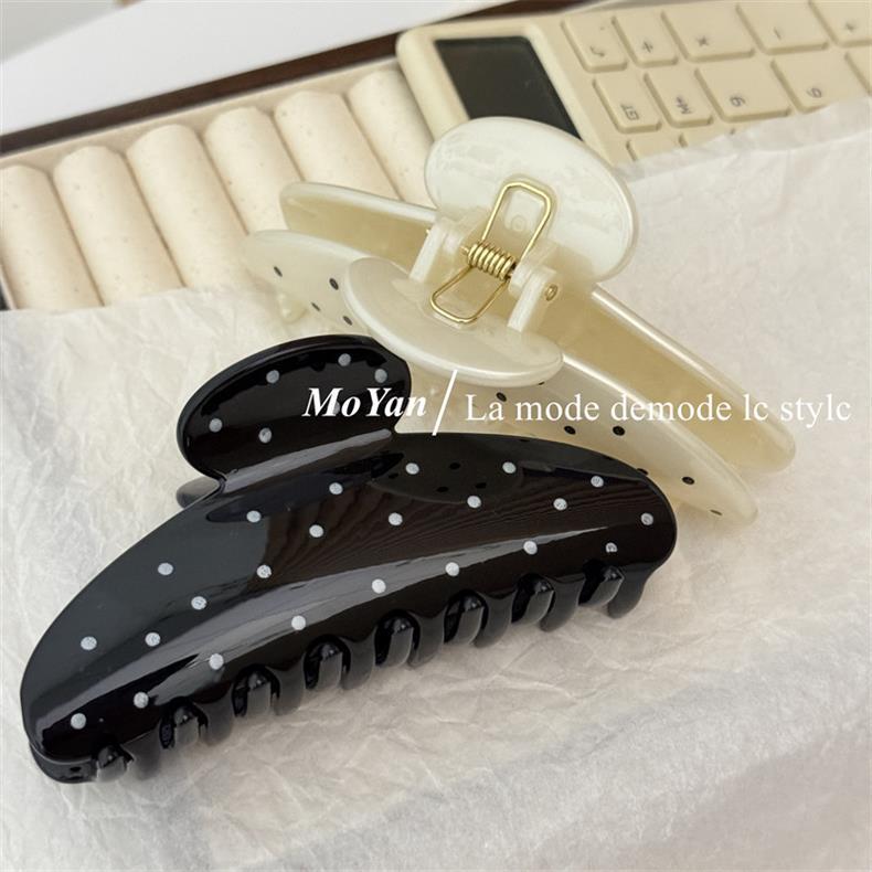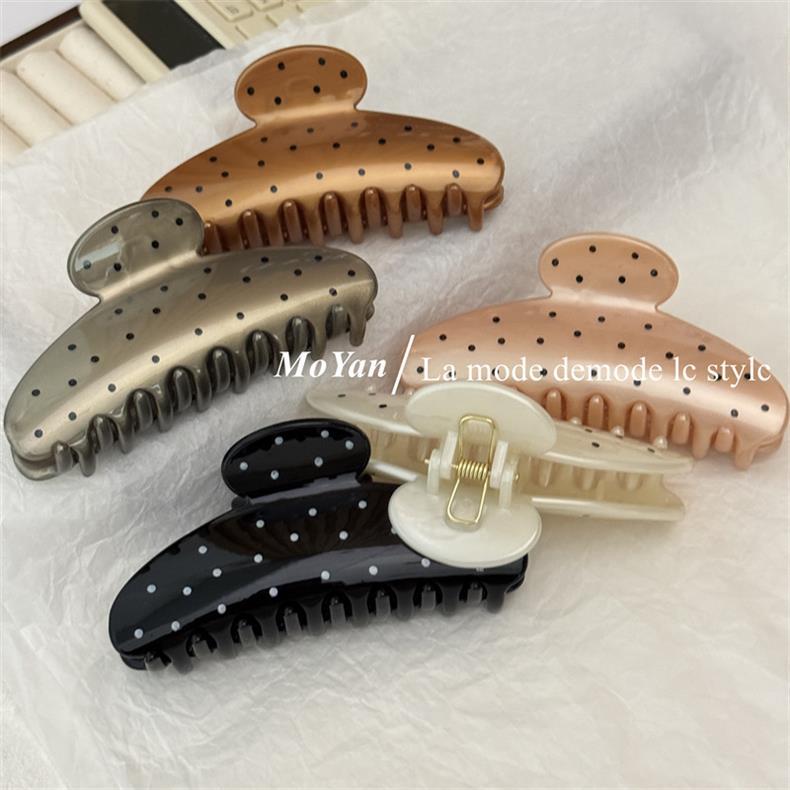 간단한 레트로 웨이브 도트 대형 헤어핀 머리 머리 머리 잡아 여성의 새로운 하이 엔드 그랩 클립 우아한 상어 클립 헤어핀스토어 가기