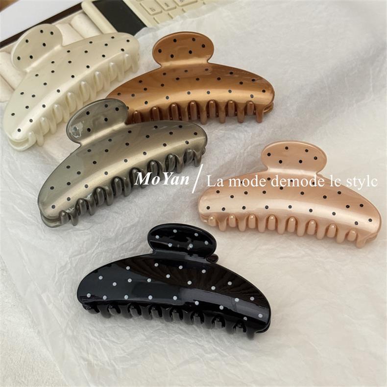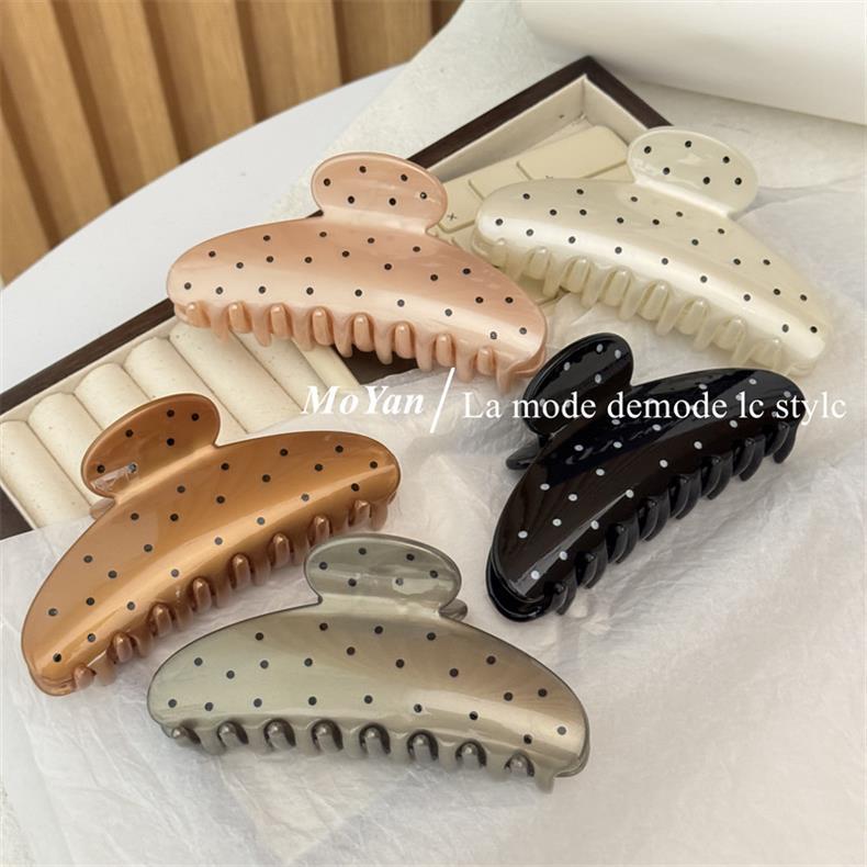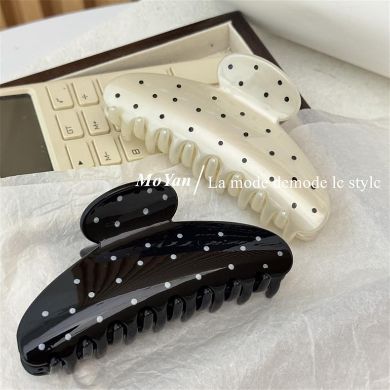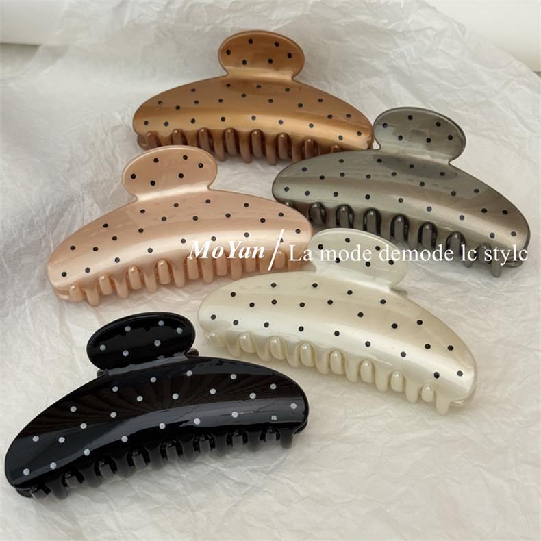 간단한 레트로 웨이브 도트 대형 헤어핀 머리 머리 머리 잡아 여성의 새로운 하이 엔드 그랩 클립 우아한 상어 클립 헤어핀