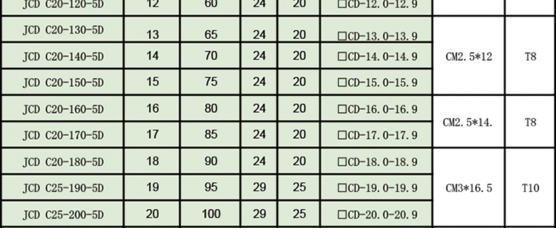 • JCD C20-100-5D 유효 깊이 50mm [범위 10.0-10.9]