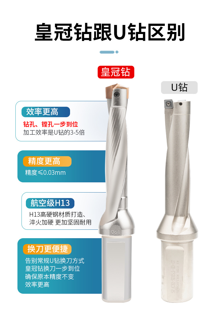 크라운 드릴 비트, 나이프 블레이드, U 드릴, 강력 드릴, 내부 냉각 확장 스프레이 워터 핸들, CNC 고속 옐로우 크라운 드릴, 스페이드 드릴