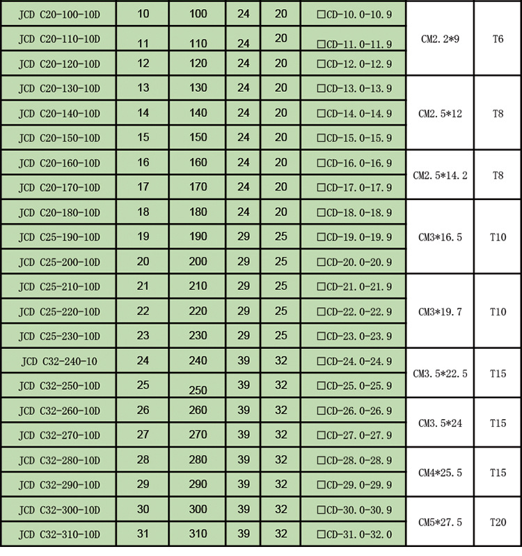 • JCD C20-100-8D 유효 깊이 80mm [범위 10.0-10.9]