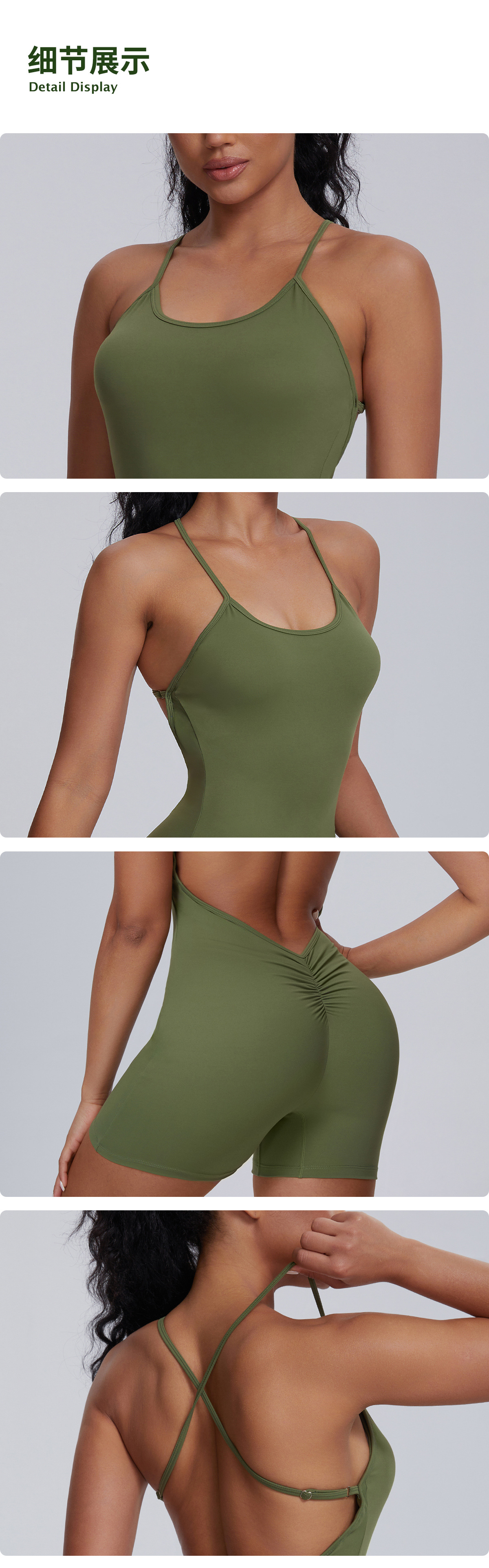 오아시스 유럽과 미국의 섹시한 여성용 원피스 요가복, 멜빵, 아름다운 등과 엉덩이 리프팅 스포츠 점프수트, 댄스 에어 피트니스웨어스토어 가기