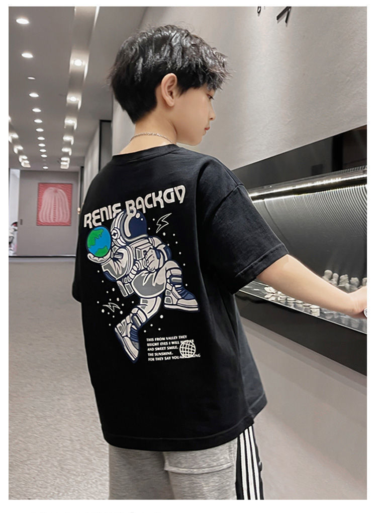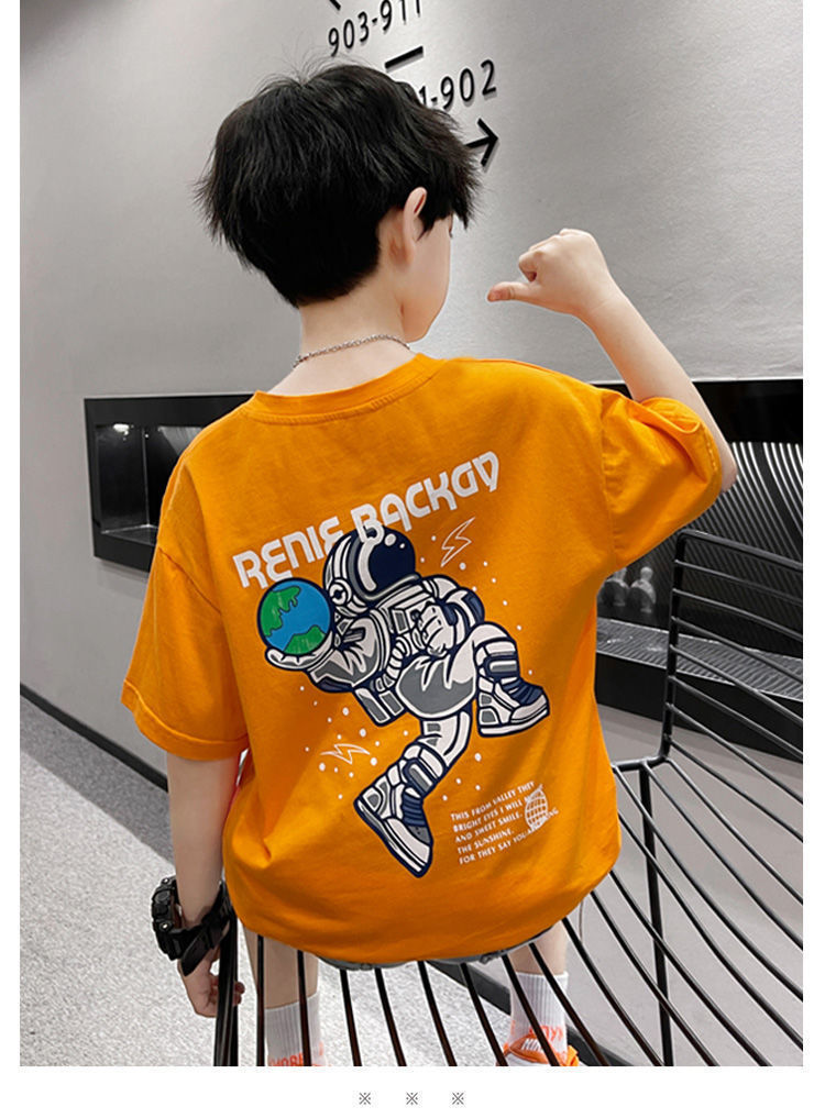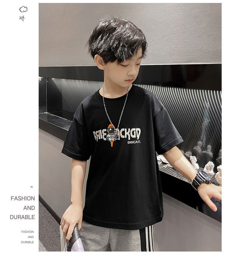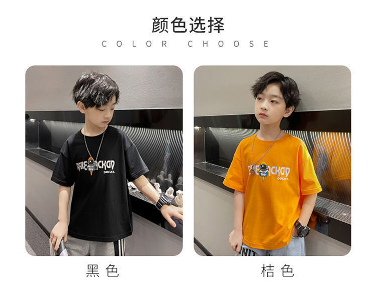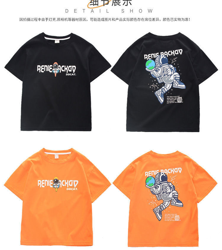 남성과 여성을 위한 순면 아동복 반팔 티셔츠, 느슨한 만화 여름 새로운 스타일 중대형 아동용 바닥 셔츠 반팔 탑 도매스토어 가기
