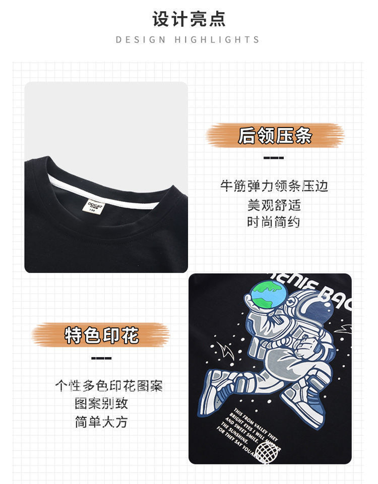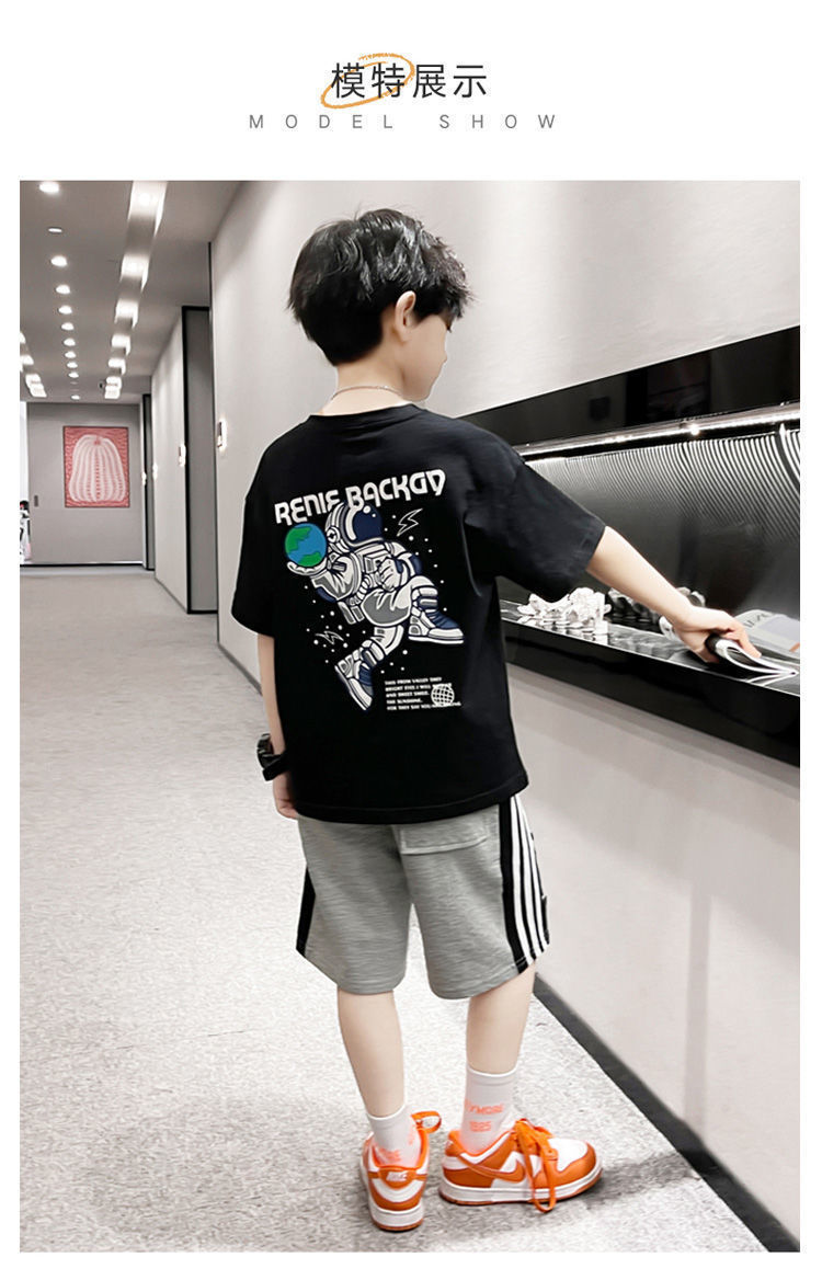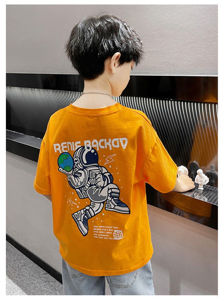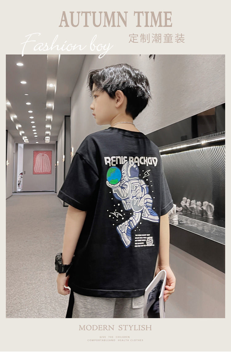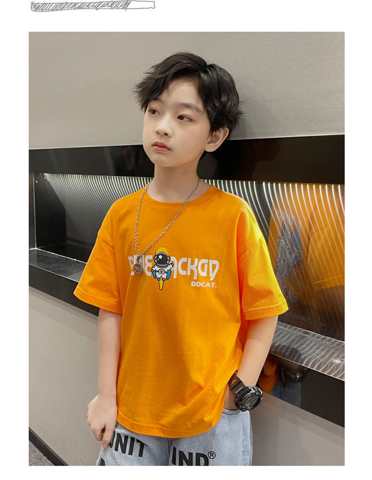 남성과 여성을 위한 순면 아동복 반팔 티셔츠, 느슨한 만화 여름 새로운 스타일 중대형 아동용 바닥 셔츠 반팔 탑 도매스토어 가기