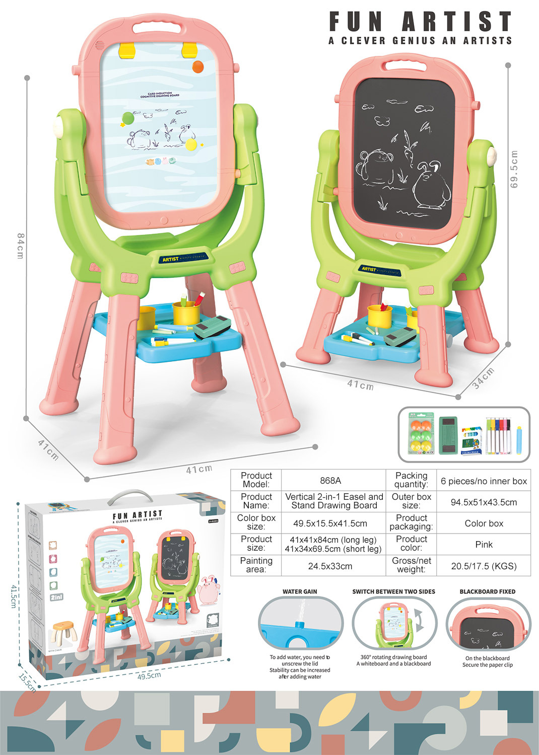 맞춤형 국경 간 어린이 그림 및 쓰기 보드 양면 수직 높이 조절 가능 3-in-1 어린이 쓰기 보드 및 그림 보드스토어 가기