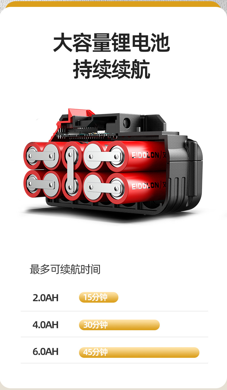 • [플러그인 + 리튬 배터리 겸용] 6.0AH 리튬 배터리, 1회 충전, 1회 충전
