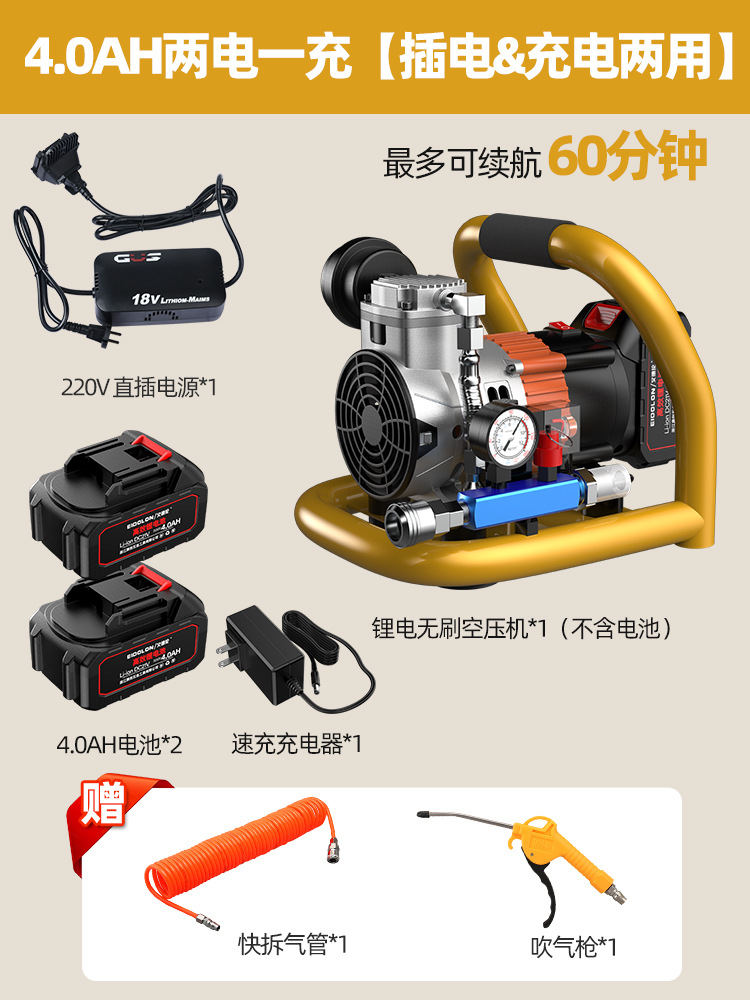 리튬 전기 공기 압축기 미니 소형 휴대용 공기 펌프 오일 프리 공기 압축기 목공 에어 네일 건 공기 탱크스토어 가기