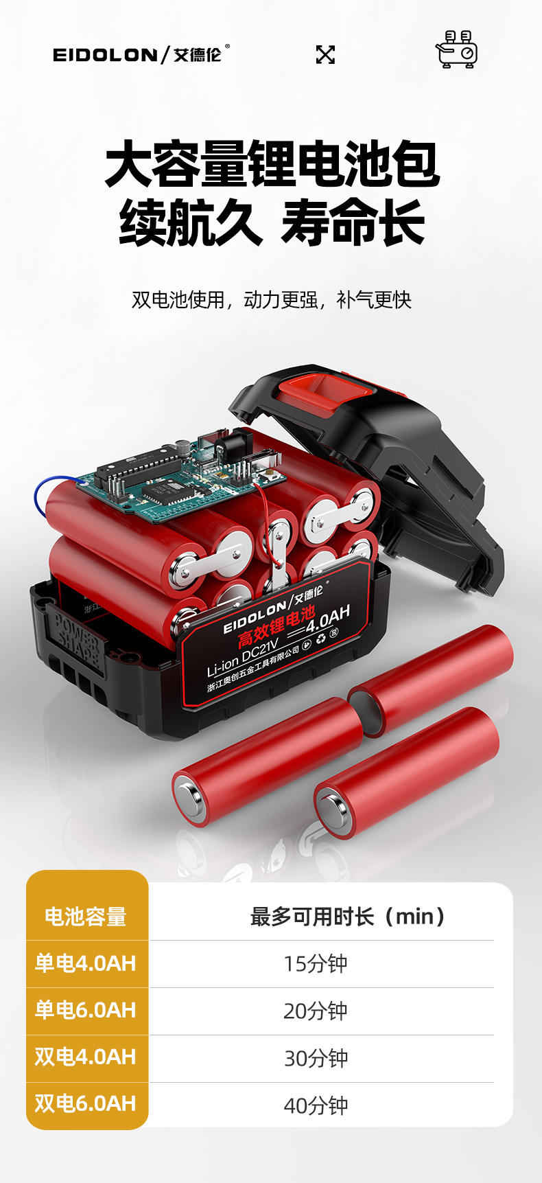 • [플러그인 + 리튬 배터리 겸용] 4.0AH 리튬 배터리, 1회 충전, 1회 충전
