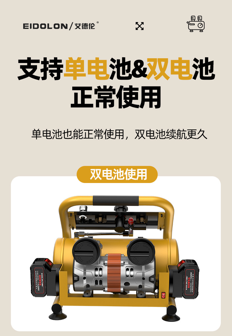 • 리튬 배터리 미니 공기 펌프 - 4.0AH 리튬 배터리, 배터리 2개 및 1회 충전 [60분 연속 사용]