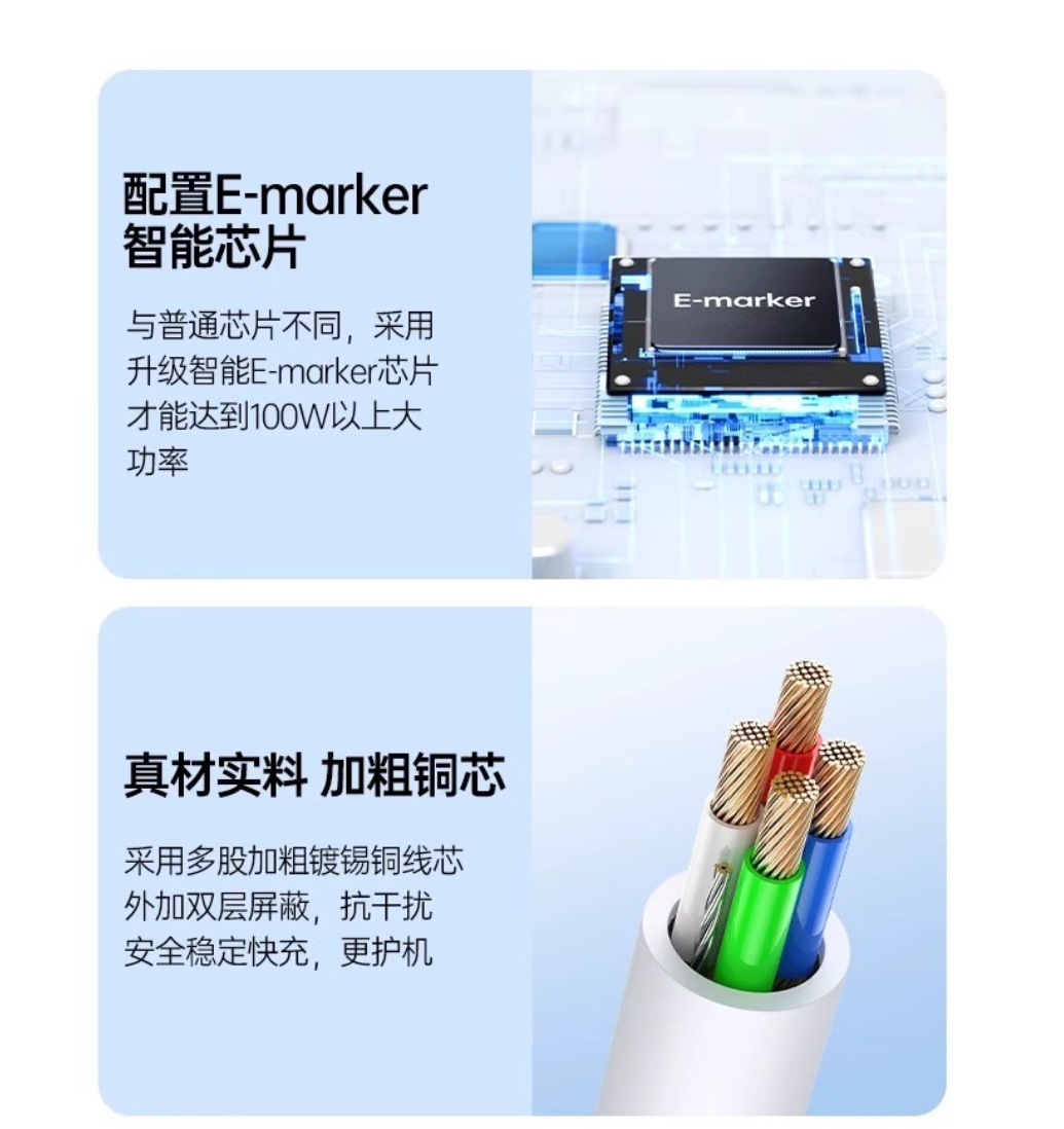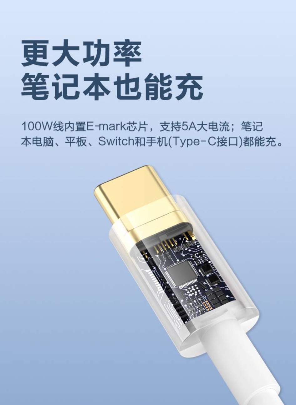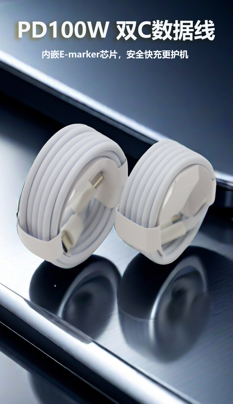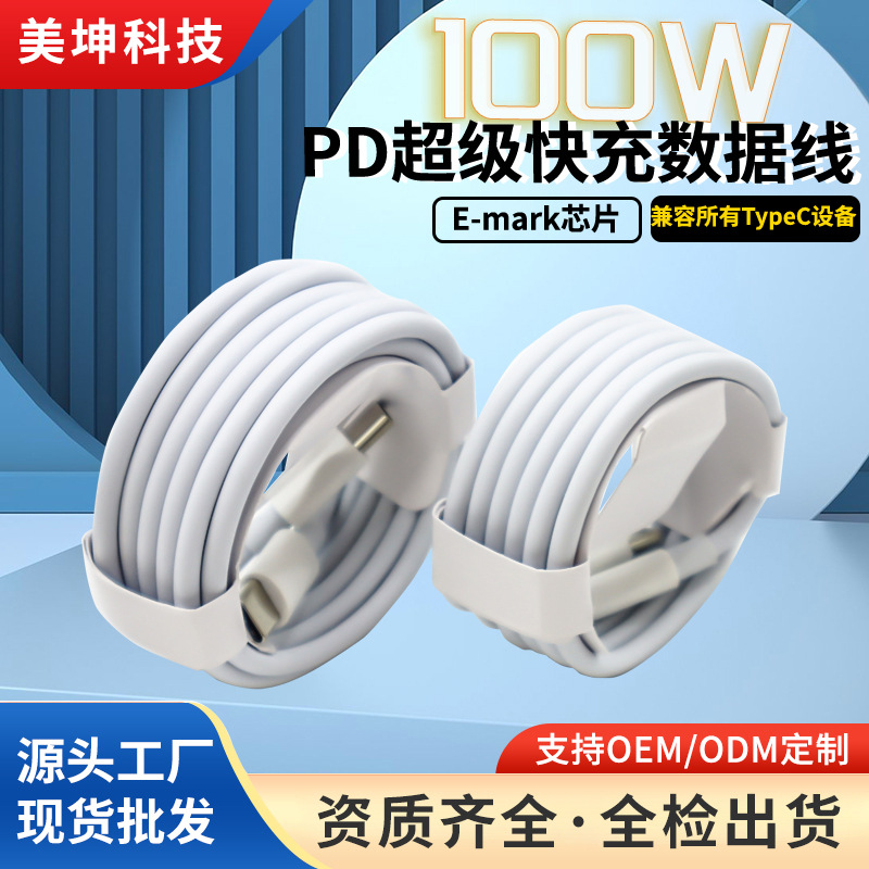 PD100W 双TYPE-C 数据线内置E-marker芯片工厂直销,量大价优,适用于苹果macbook/华为笔记本电脑等