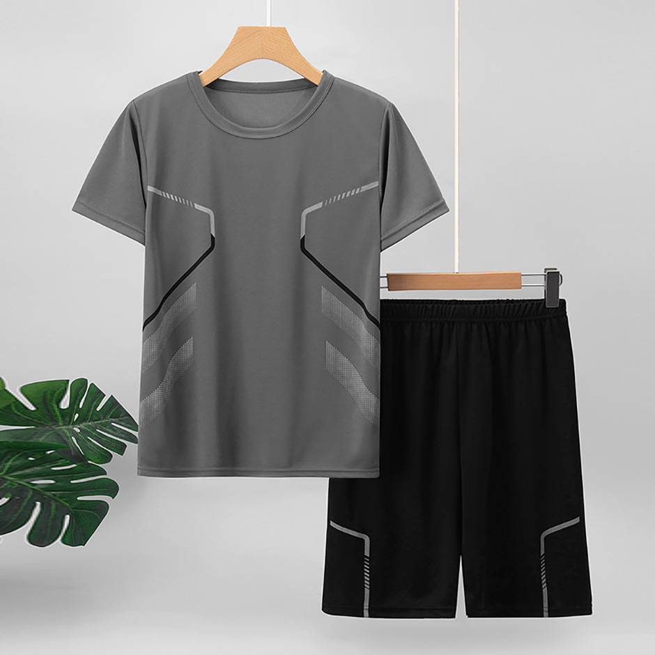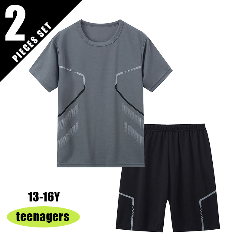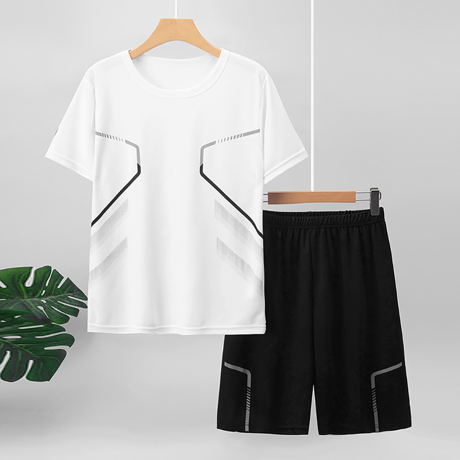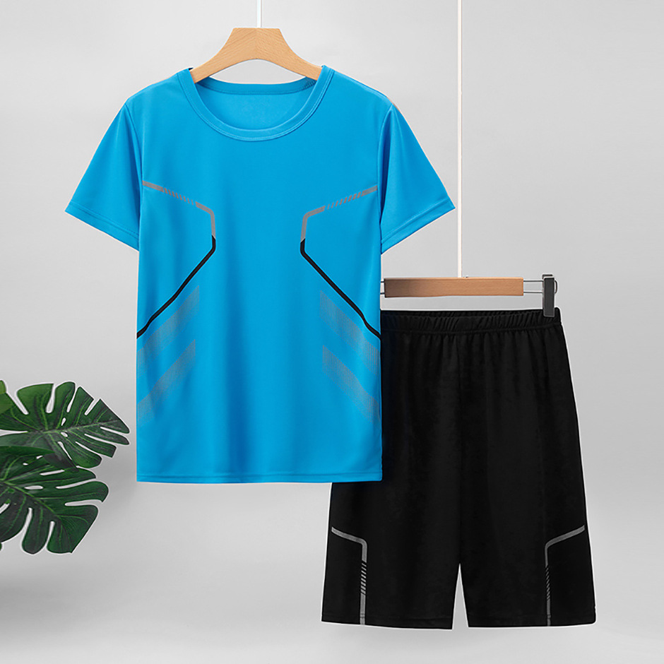 해외 국경 레저 남녀 청소년을위한 여름 반팔 피트니스 옷 아이스 실크 빠른 건조 농구 러닝 올 매치 반바지