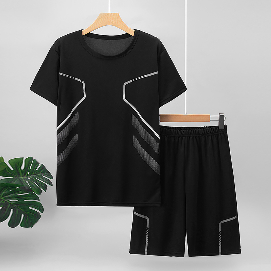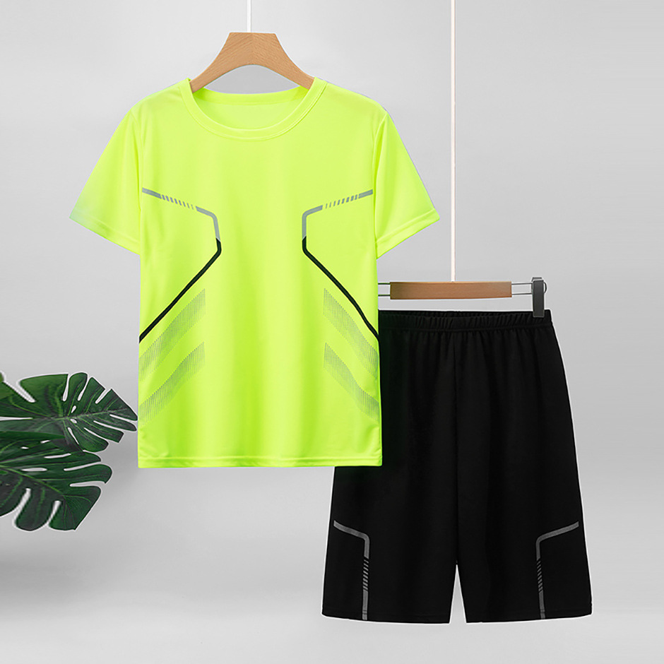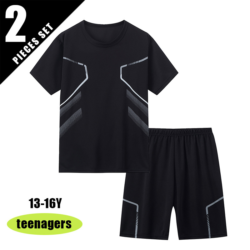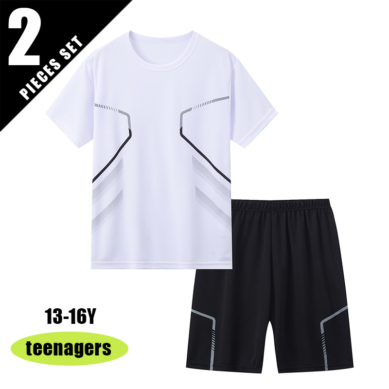 해외 국경 레저 남녀 청소년을위한 여름 반팔 피트니스 옷 아이스 실크 빠른 건조 농구 러닝 올 매치 반바지