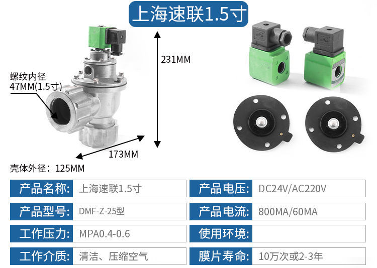 전자기 펄스 밸브 백 집진기 부스트 공압 밸브 상하이 직각 밸브 백 수중 밸브 다이어프램 1.0-4inch스토어 가기