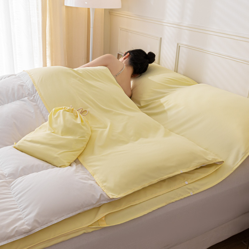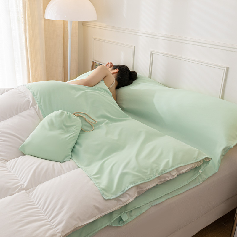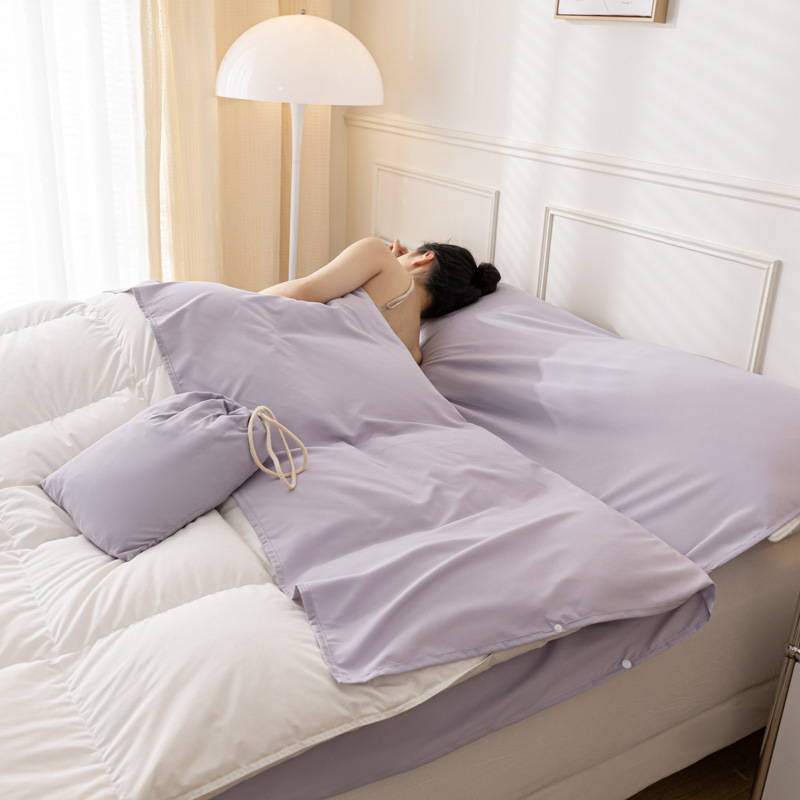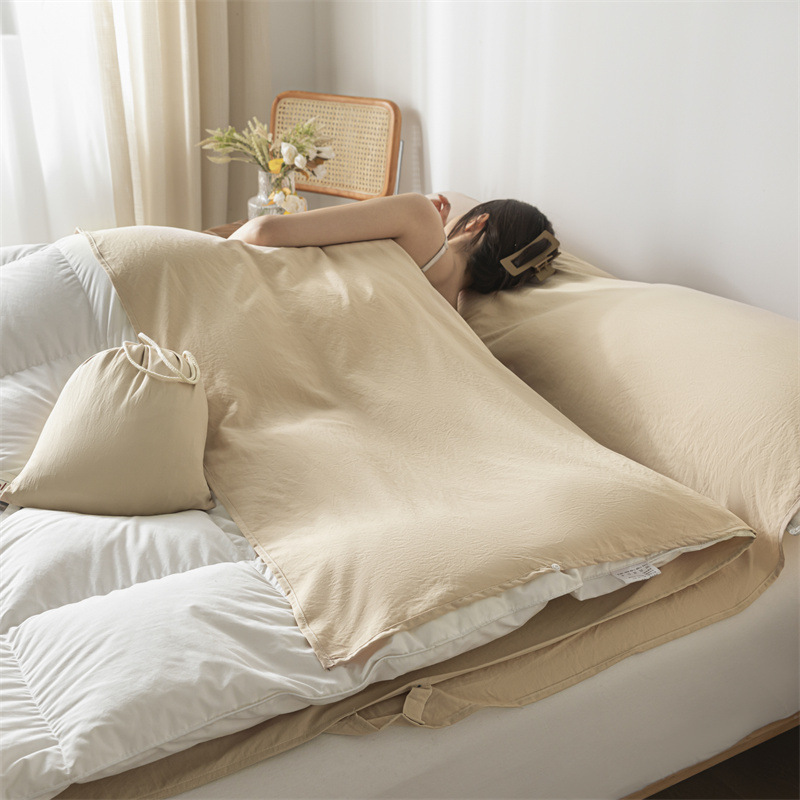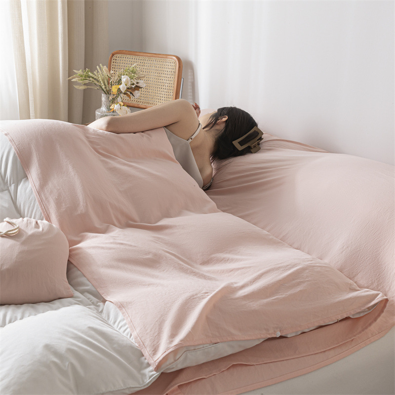 워시드 코튼 호텔 침낭 성인 여행용 침대 시트 이불 커버 4피스 세트 휴대용 기차 슬리퍼
