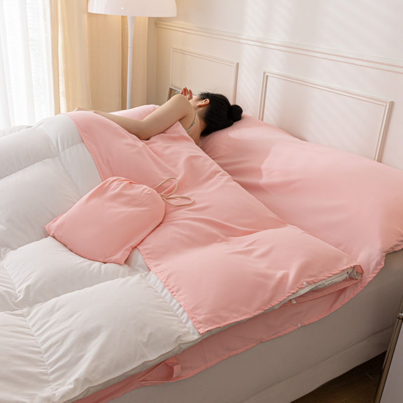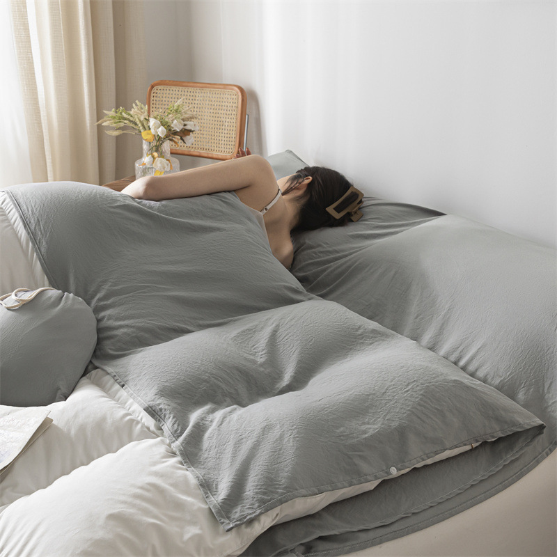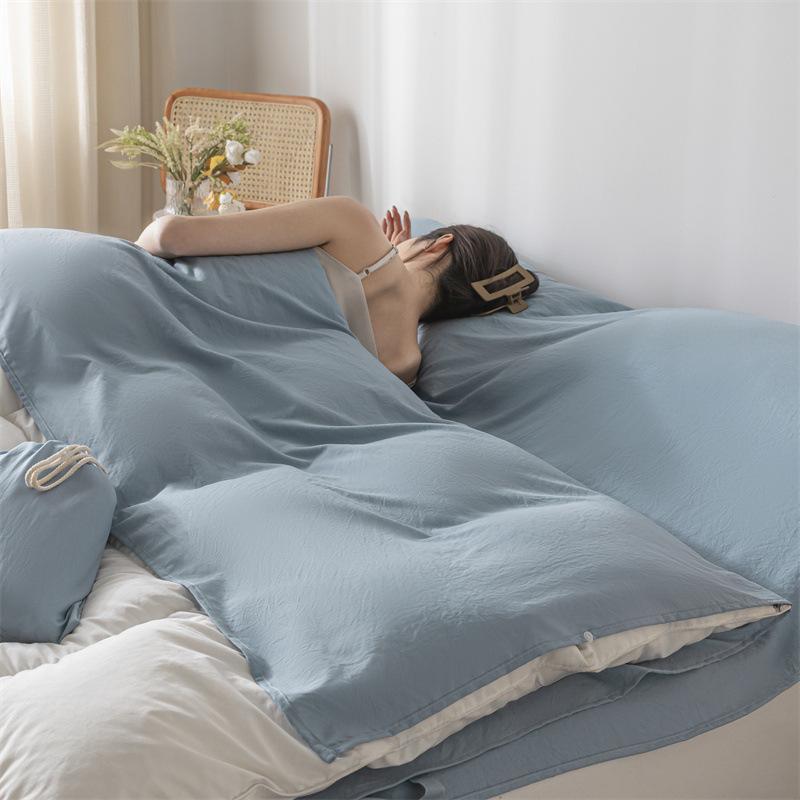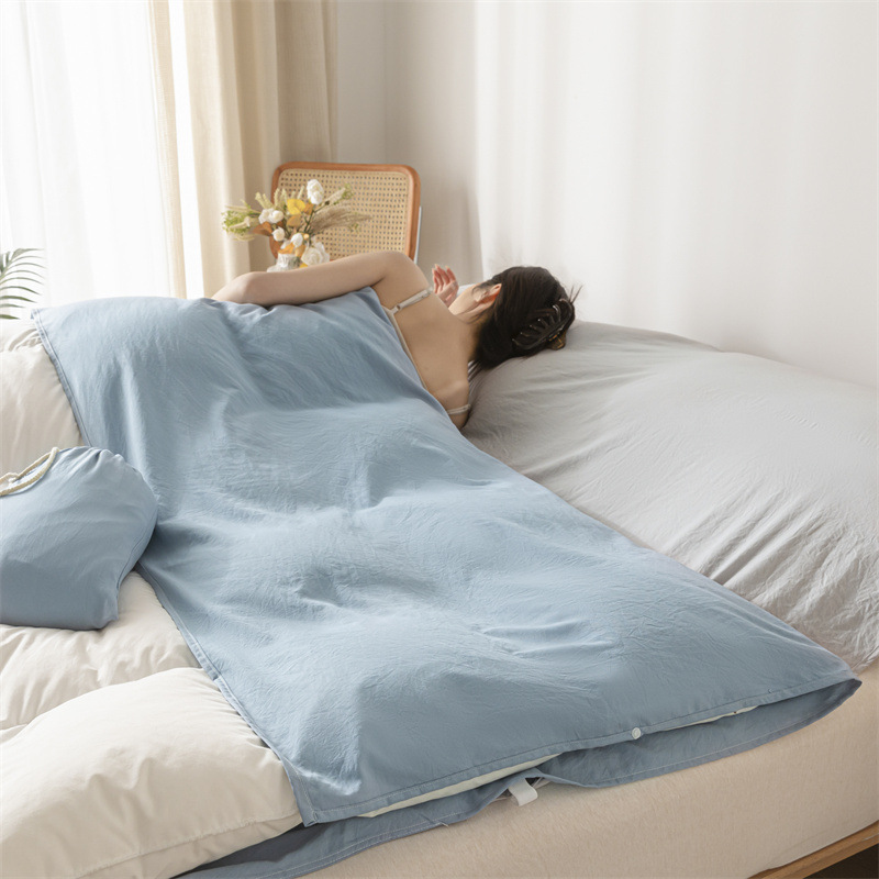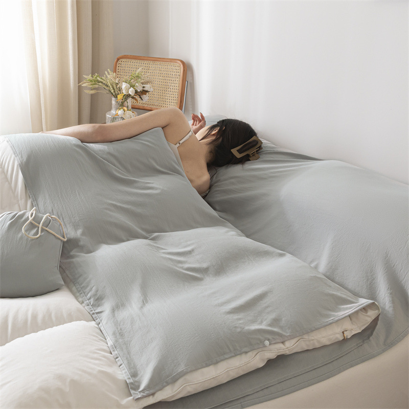 워시드 코튼 호텔 침낭 성인 여행용 침대 시트 이불 커버 4피스 세트 휴대용 기차 슬리퍼스토어 가기