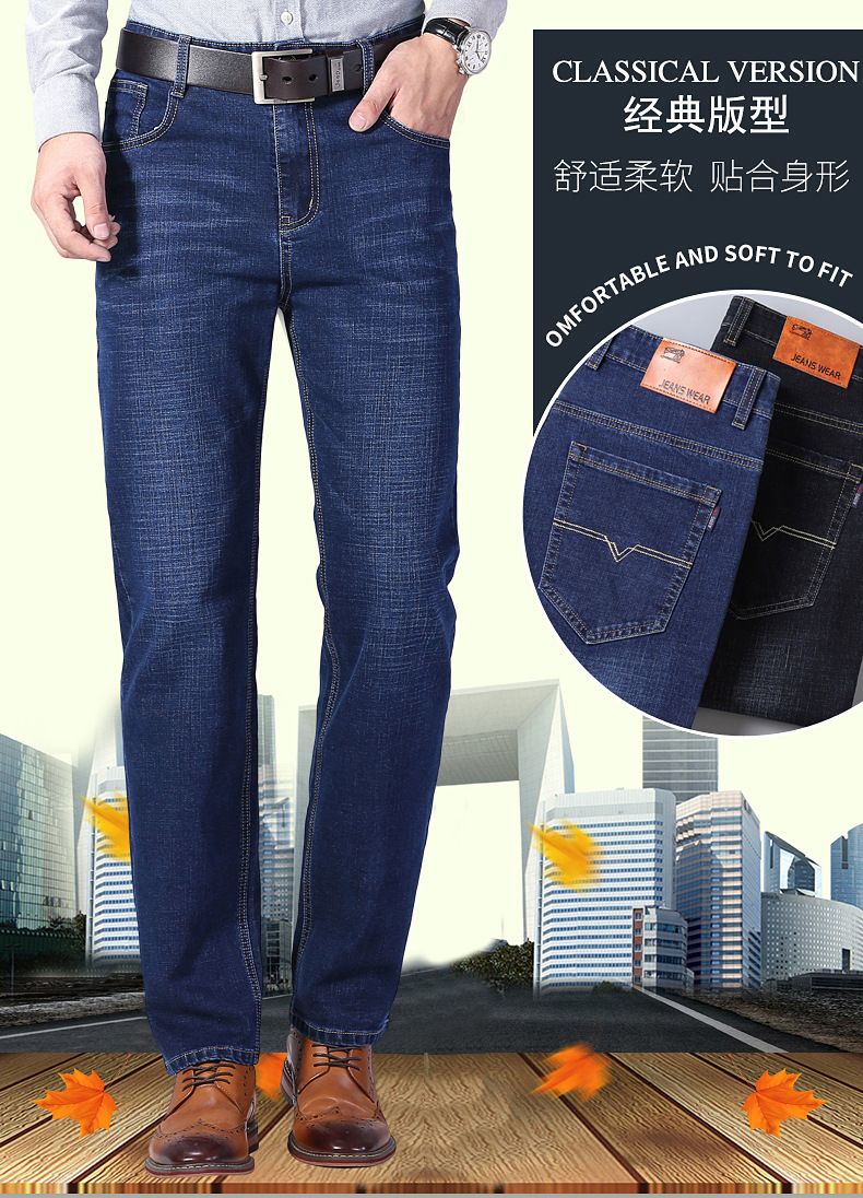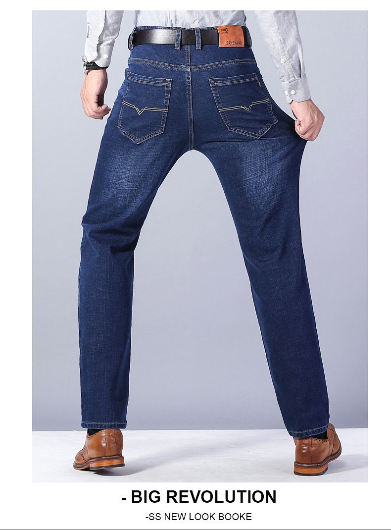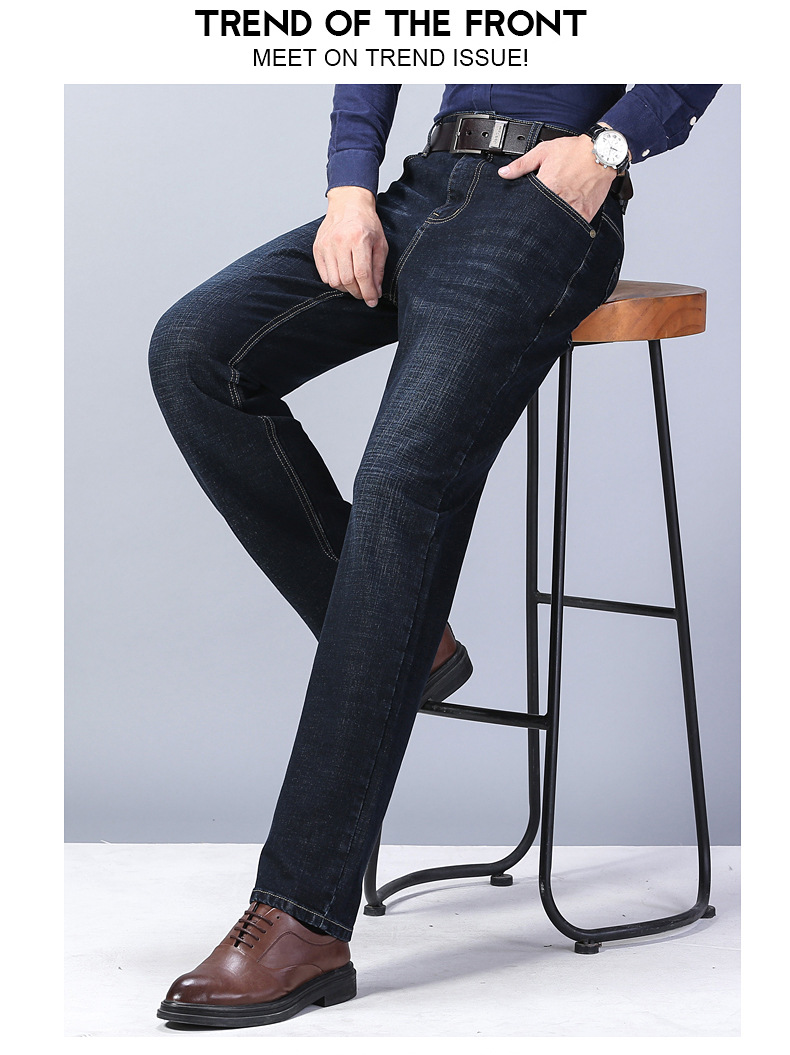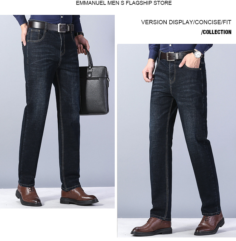 무료 배송 2024 가을, 겨울 청바지 남성 스트레이트 루즈 스트레치 대형 비즈니스 남성 캐주얼 긴 바지스토어 가기