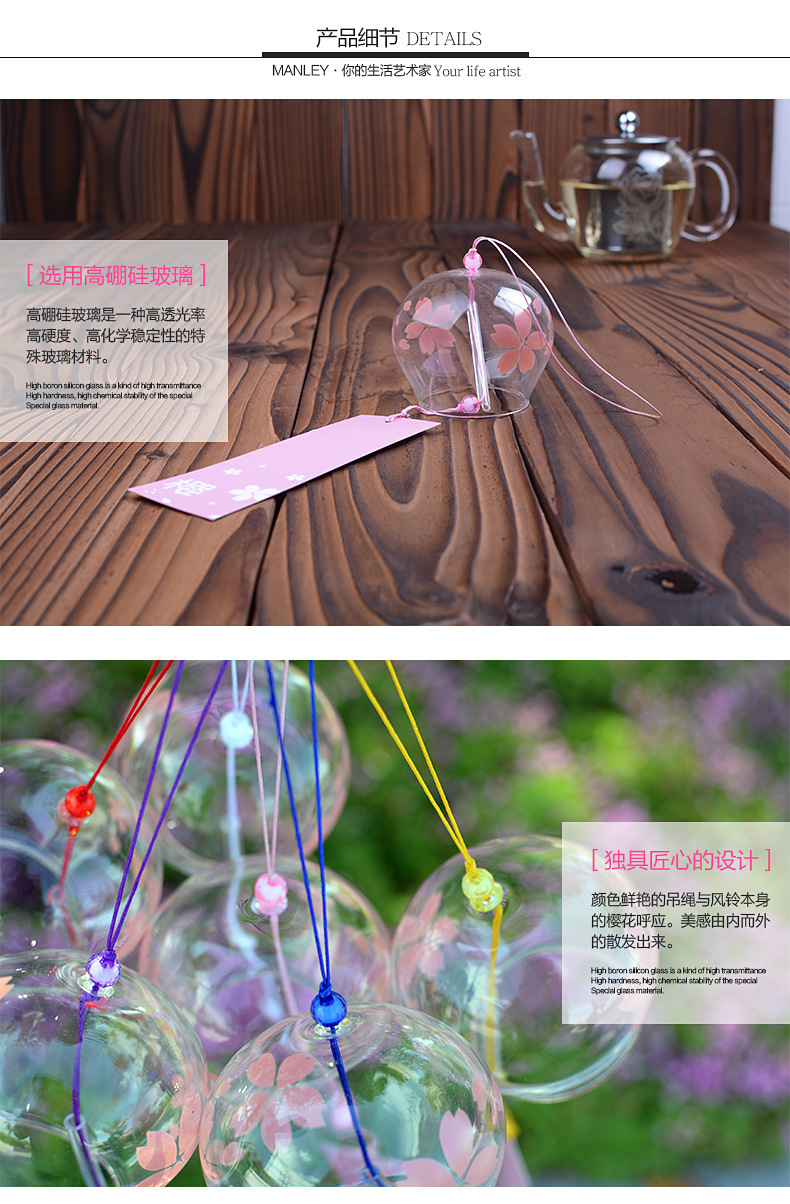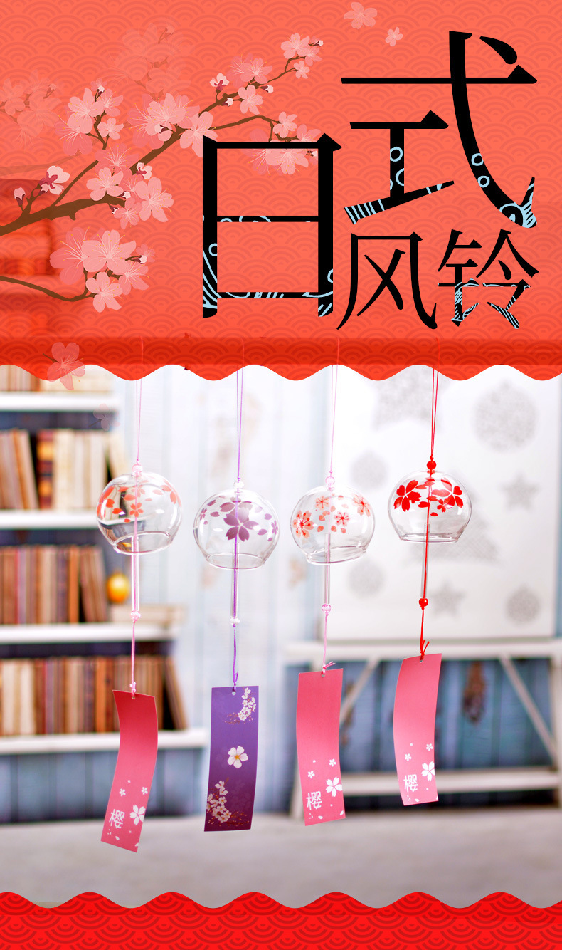 일본식 바람 벨 매달려 장식품 문 매달려 나무 발코니 실내 유리 바람 벨 인터넷 축하와 바람 부동산 장식 펜던트스토어 가기