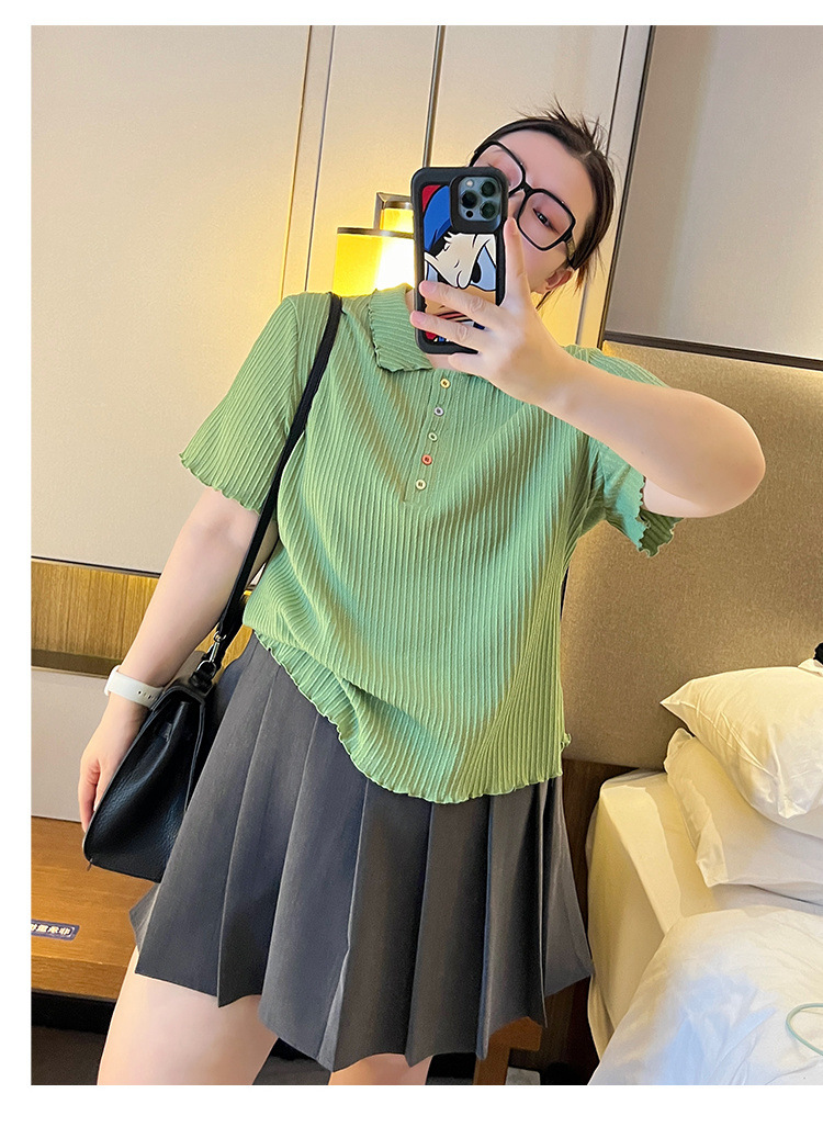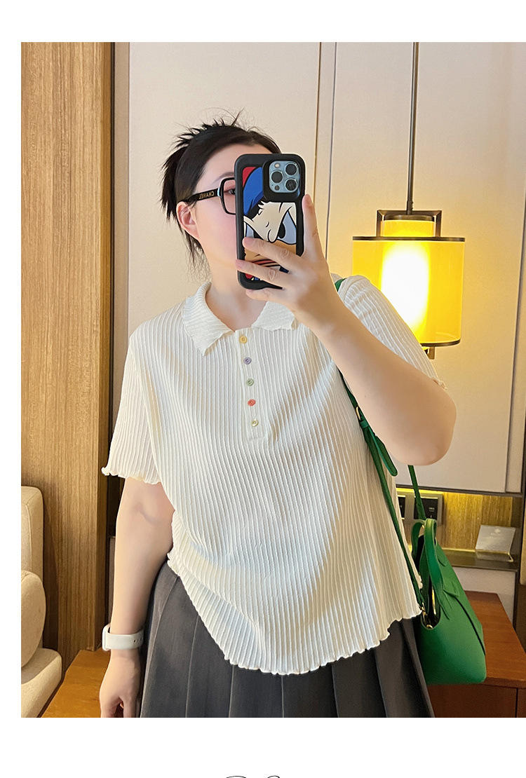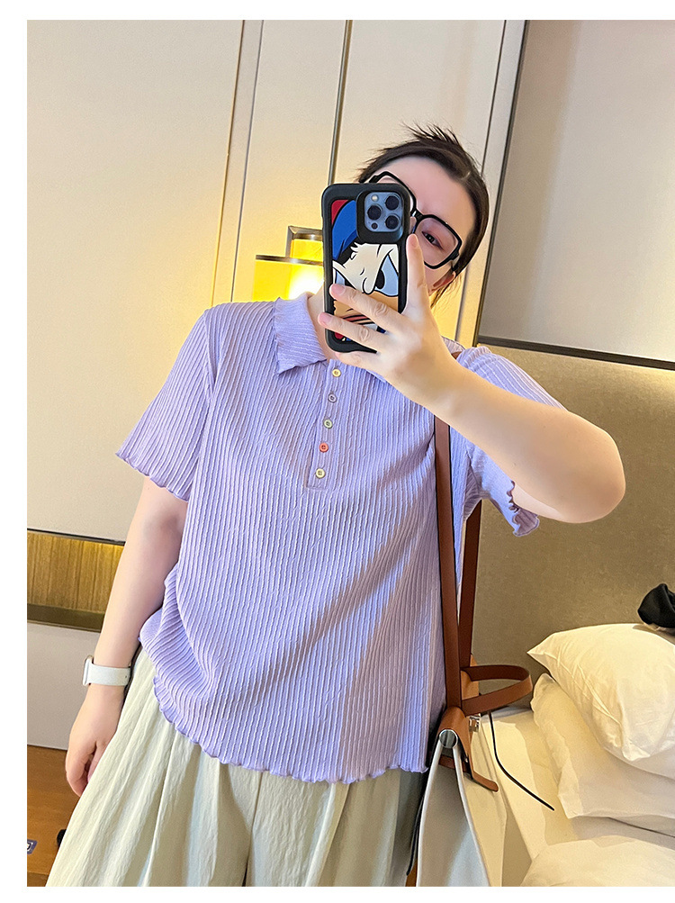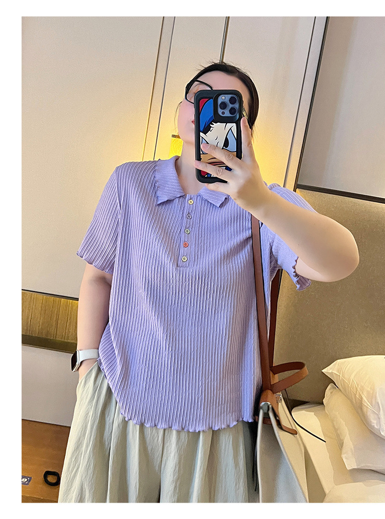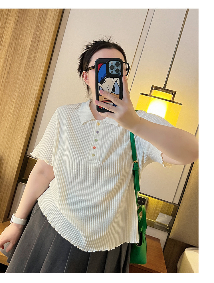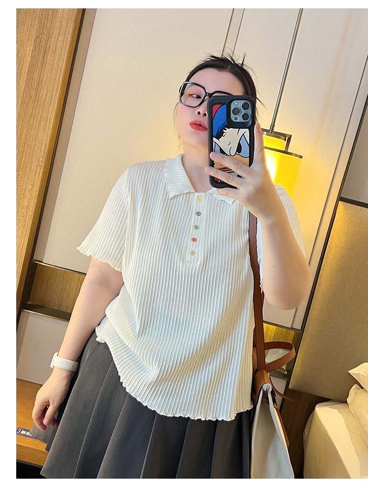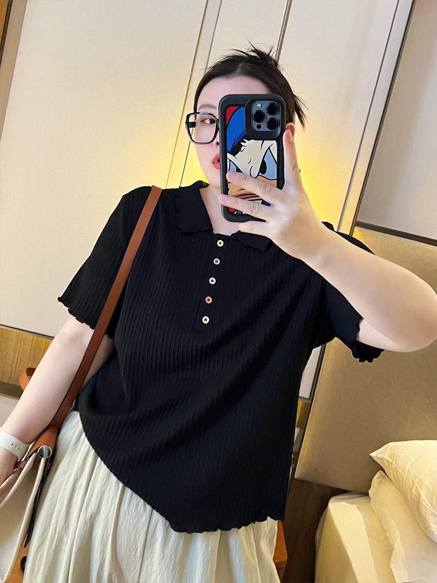 150.00kg 플러스 사이즈 여성 도파민 새로운 반팔 셔츠 여성 느슨한 배꼽 커버 여름 디자인 패션 탑스토어 가기