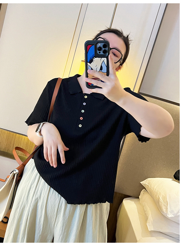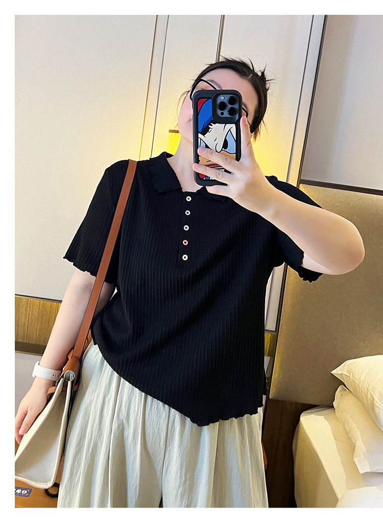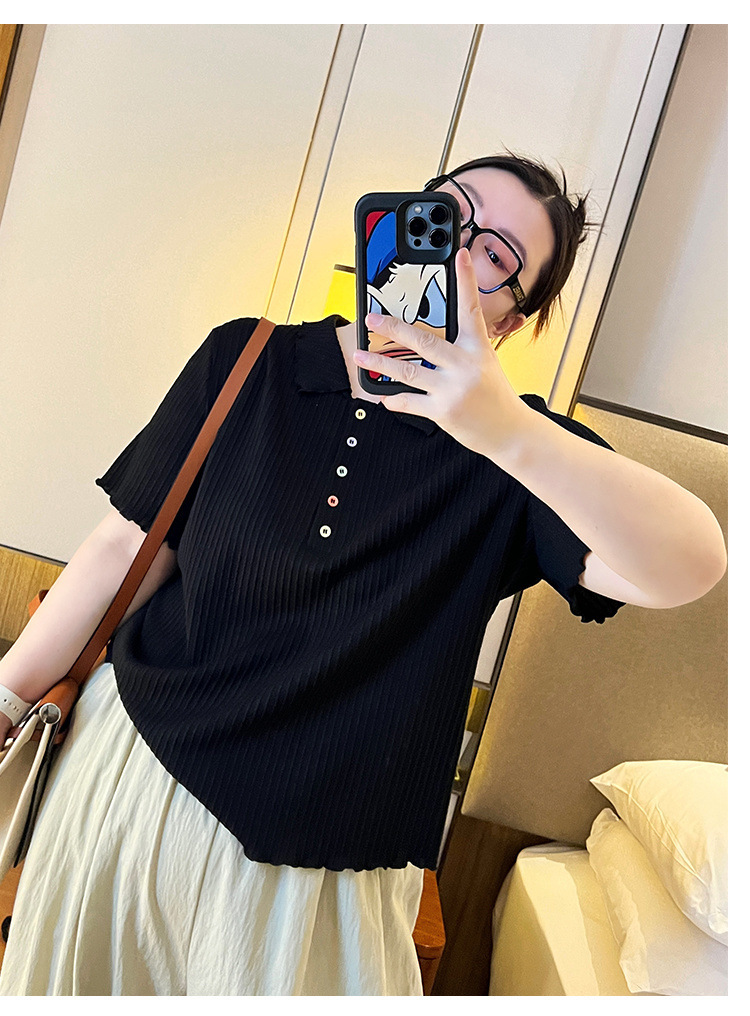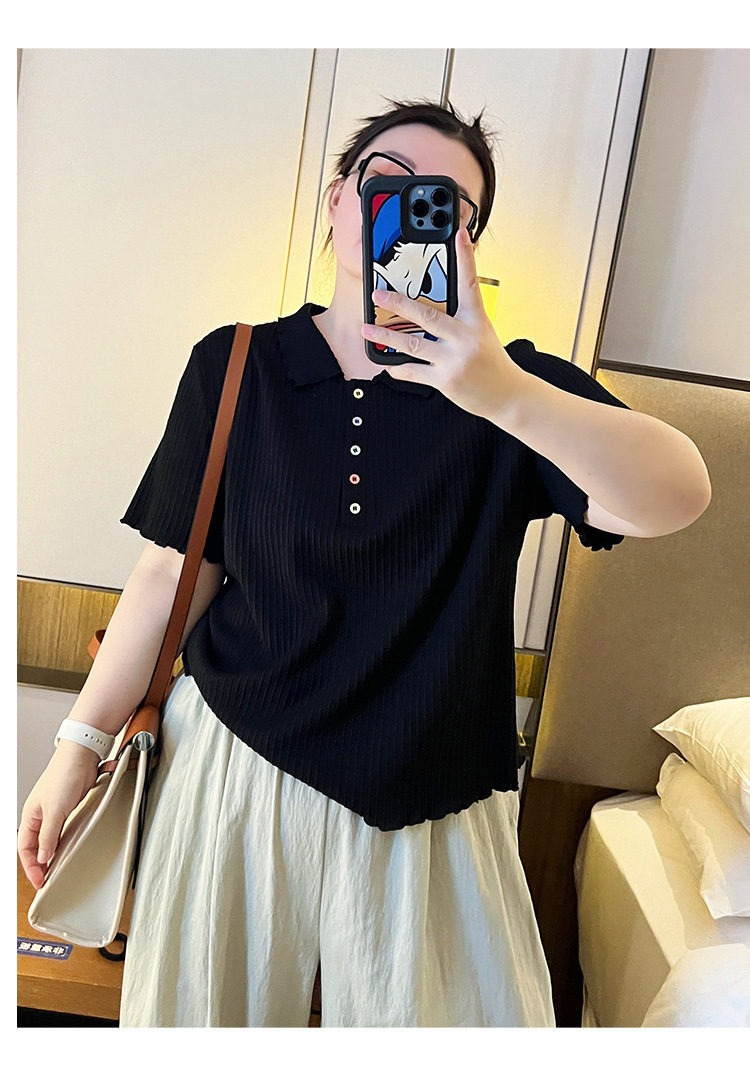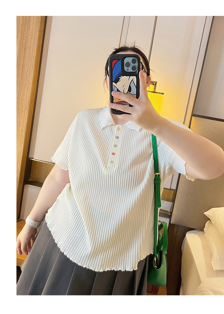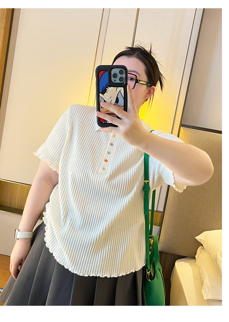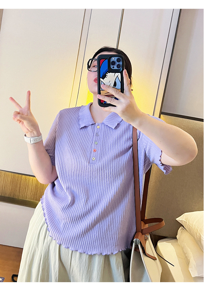 150.00kg 플러스 사이즈 여성 도파민 새로운 반팔 셔츠 여성 느슨한 배꼽 커버 여름 디자인 패션 탑스토어 가기