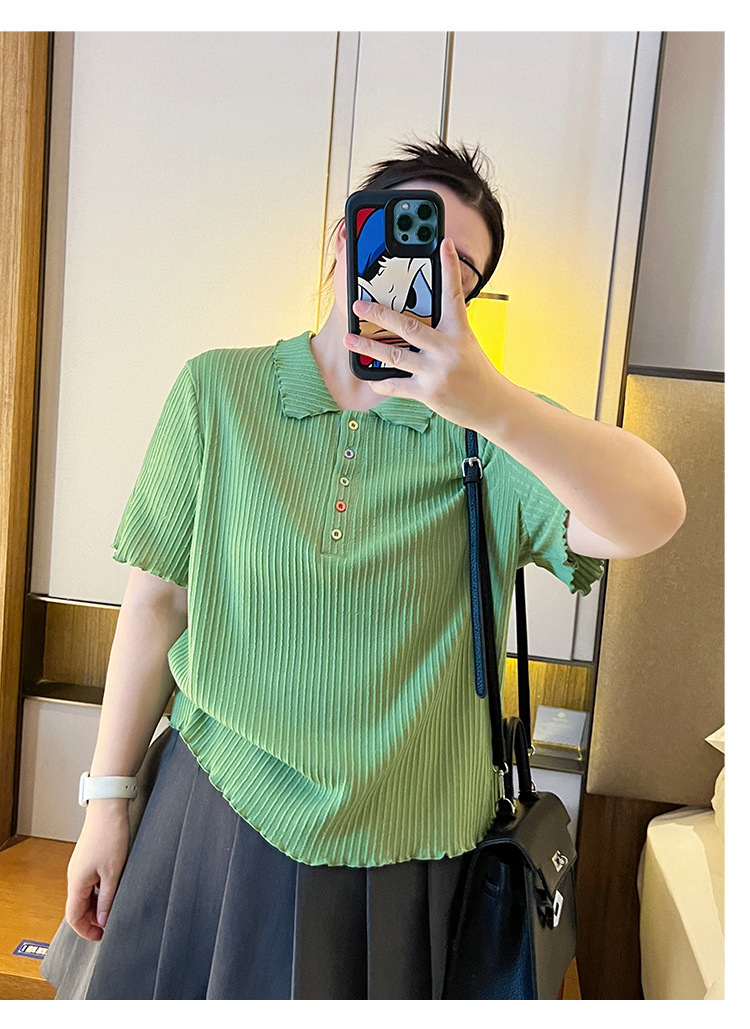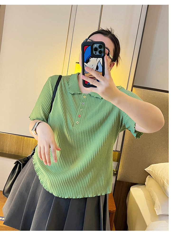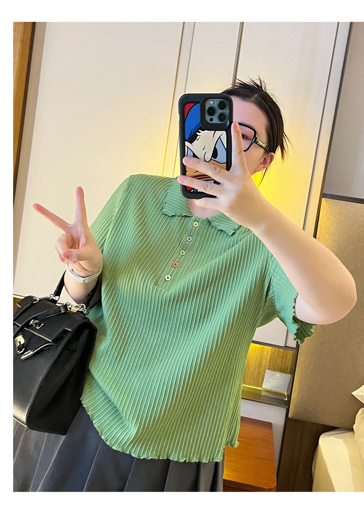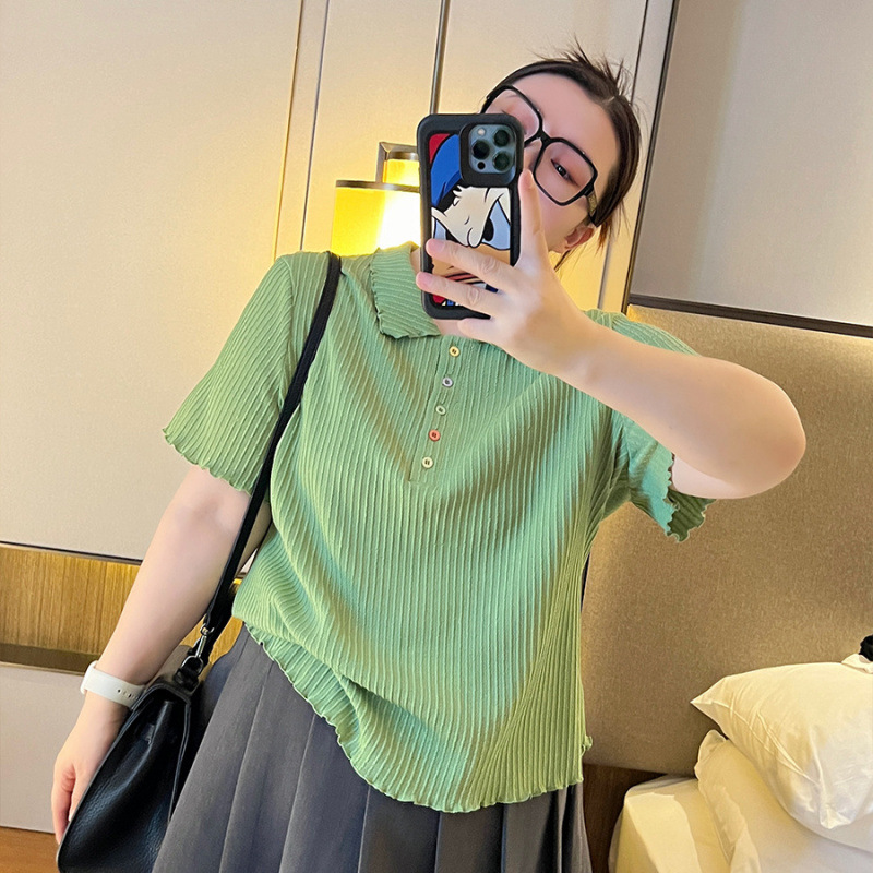 150.00kg 플러스 사이즈 여성 도파민 새로운 반팔 셔츠 여성 느슨한 배꼽 커버 여름 디자인 패션 탑
