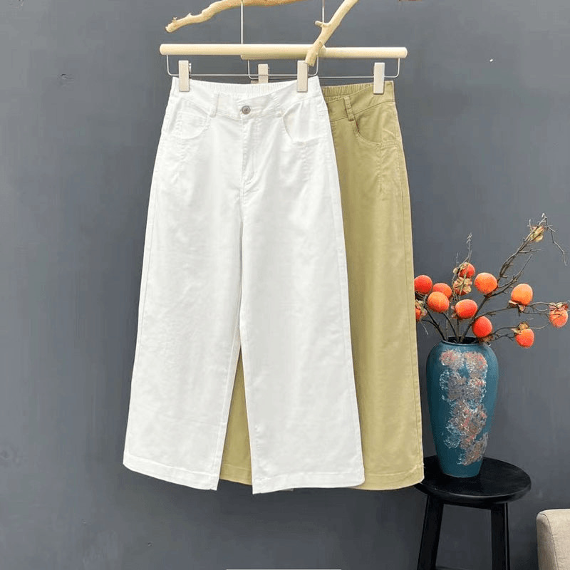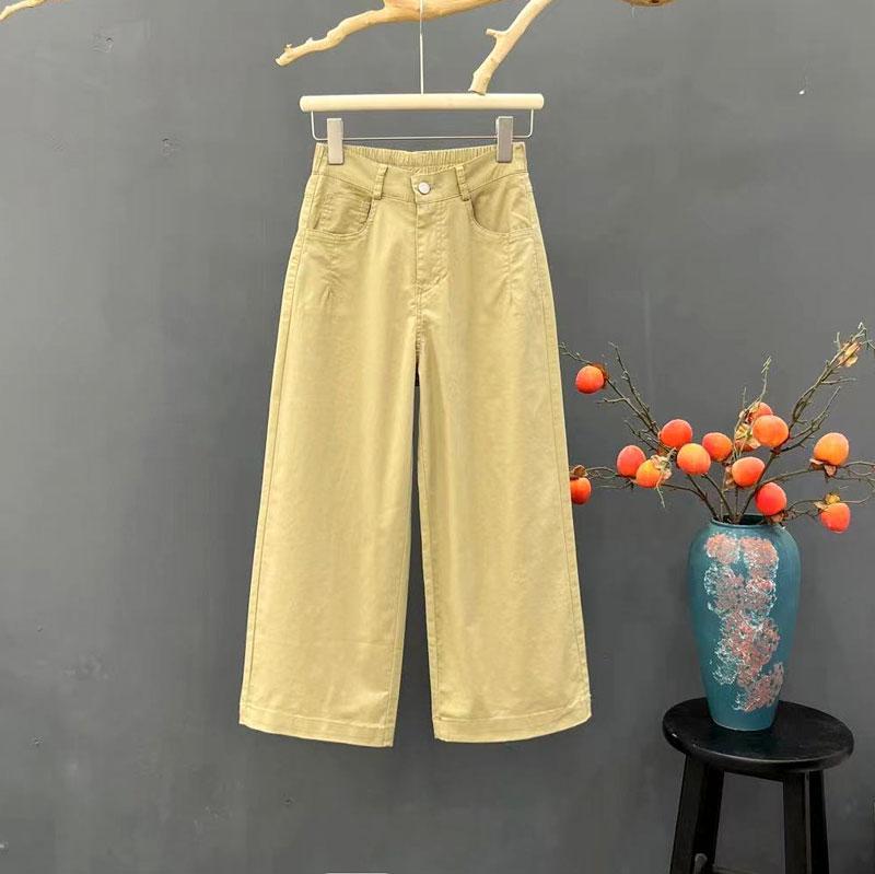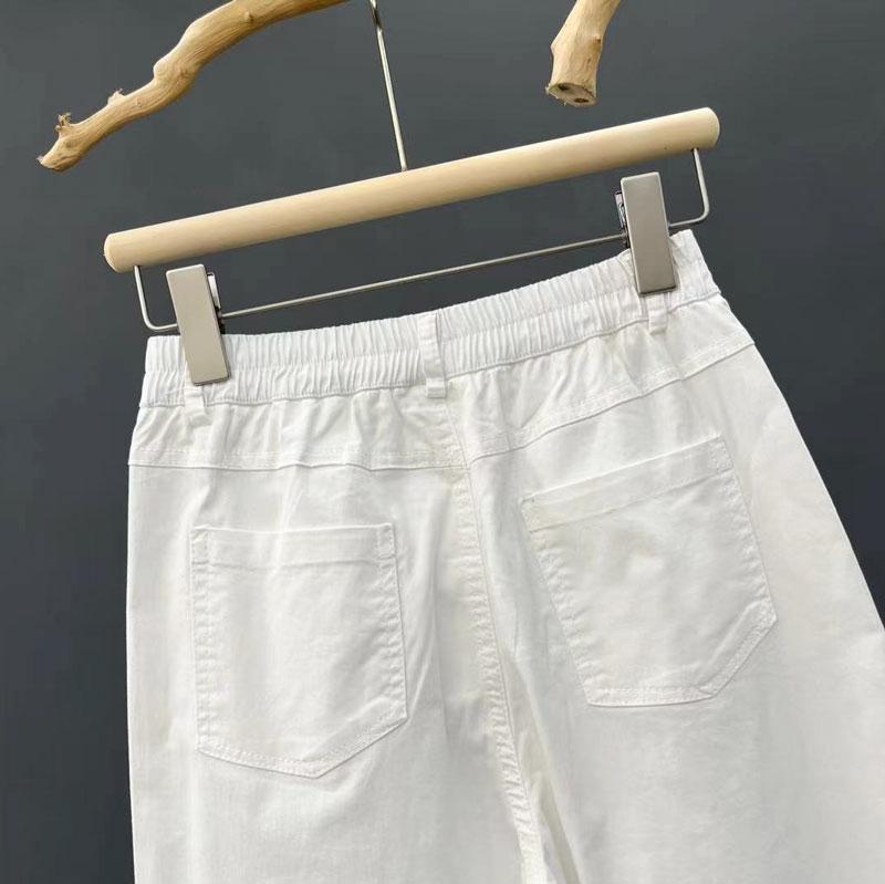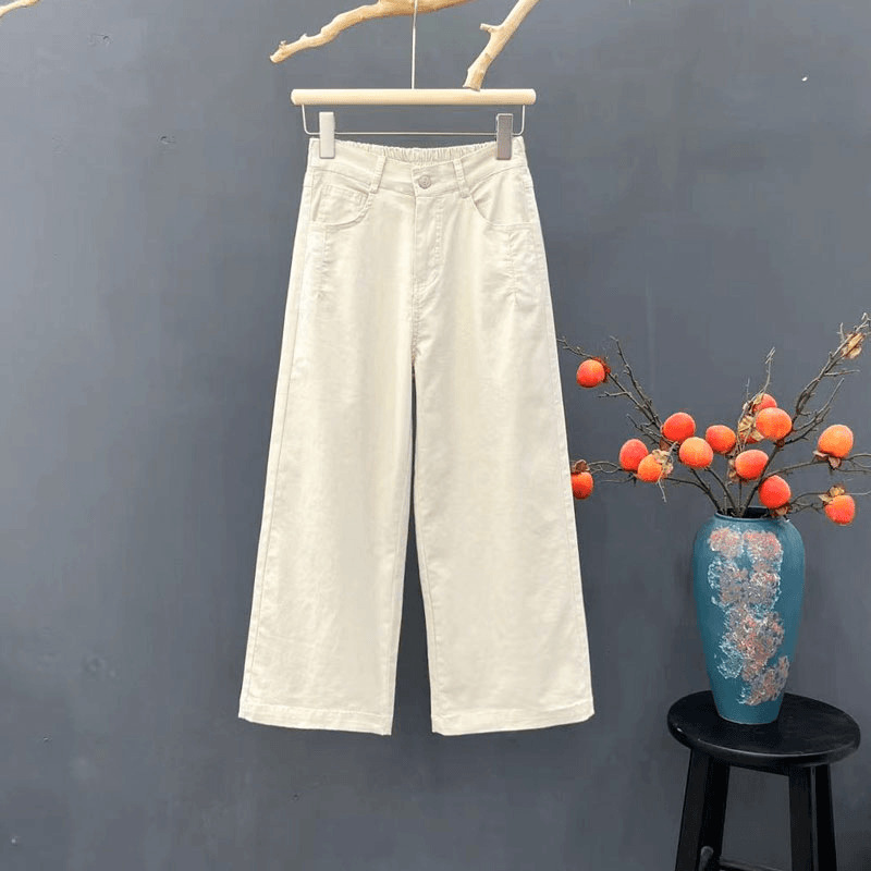 작은 8 점 바지 여성의 봄과 가을 패션 캐주얼 올 매치 얇은 와이드 레그 바지 높은 허리 흰색 느슨한 할머니 바지스토어 가기