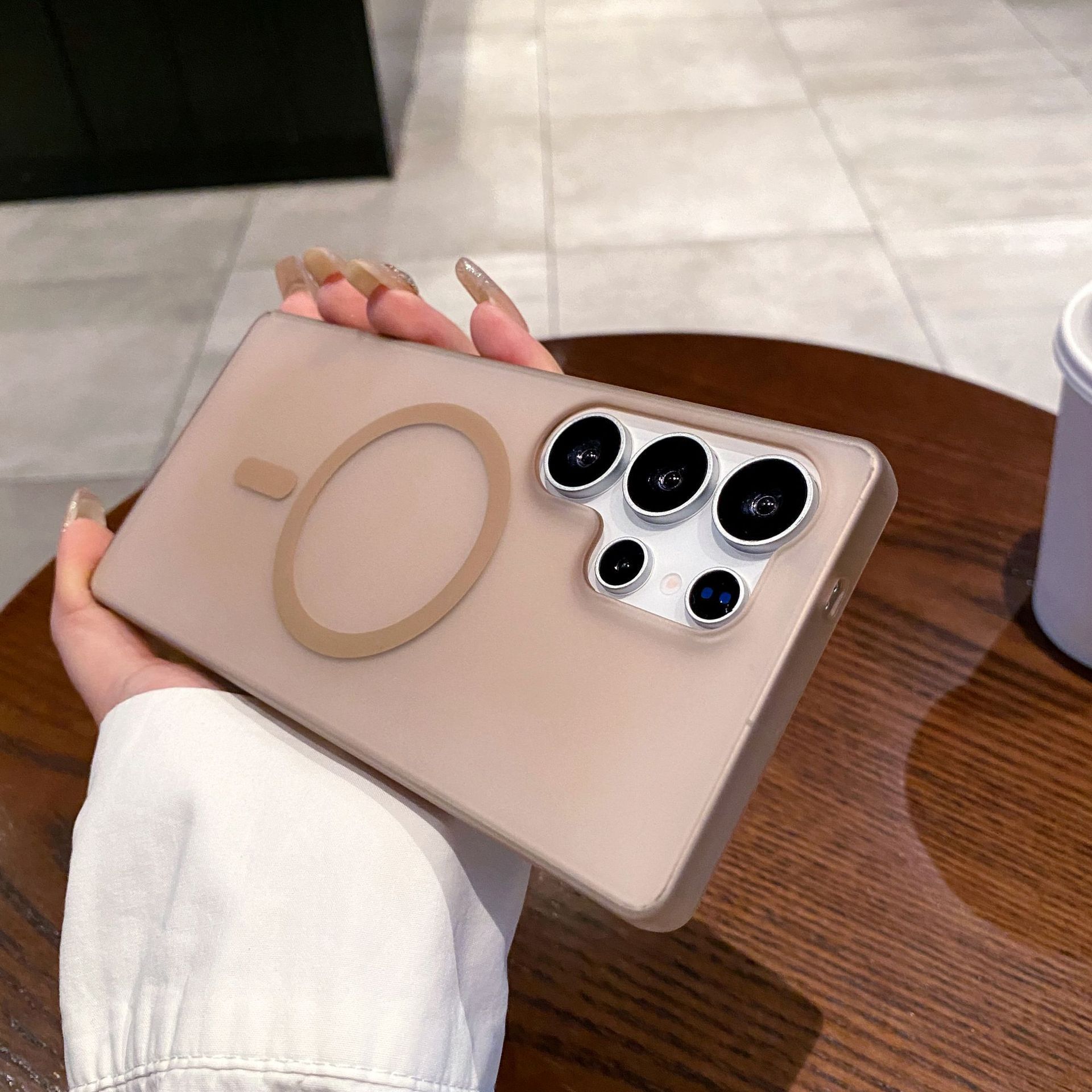 삼성 S25ultra 휴대폰 케이스에 적합한 초박형 반투명 PC 아이스 미스트 자기 흡입 S24 새로운 S23FE 간단한 낙하 방지스토어 가기