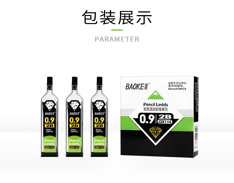 Baoke 자동 연필 리필 0.9mm 이동식 리필 2B 자동 연필 리필 도매 QX114스토어 가기