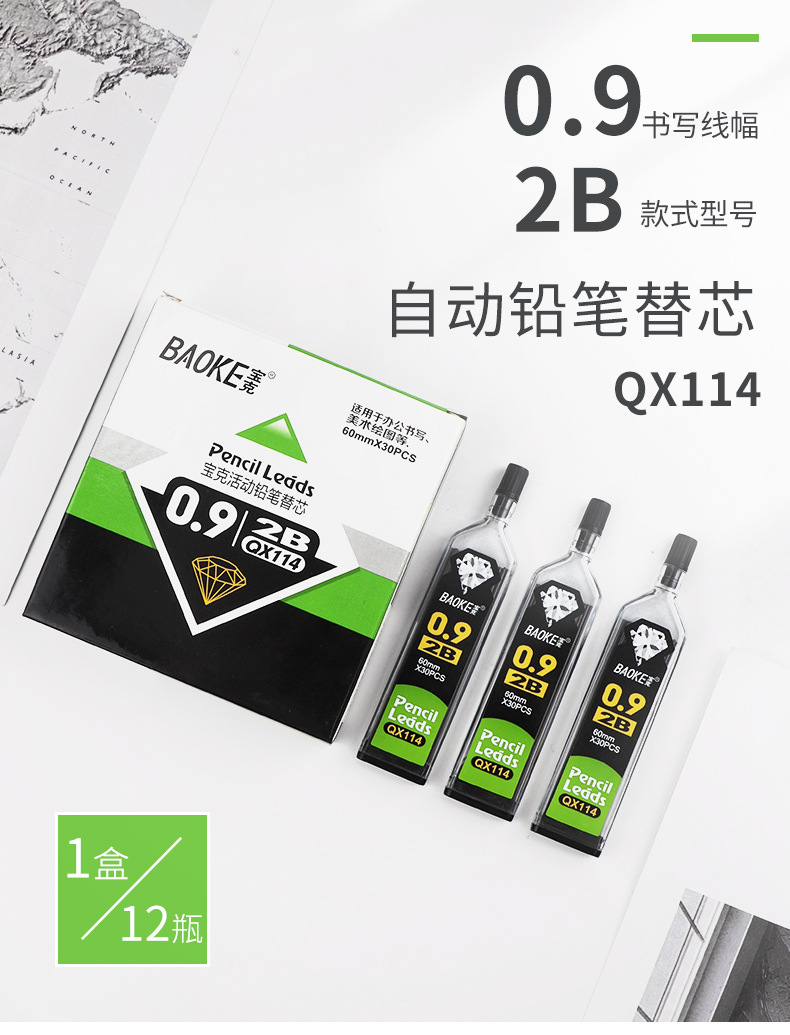 Baoke 자동 연필 리필 0.9mm 이동식 리필 2B 자동 연필 리필 도매 QX114