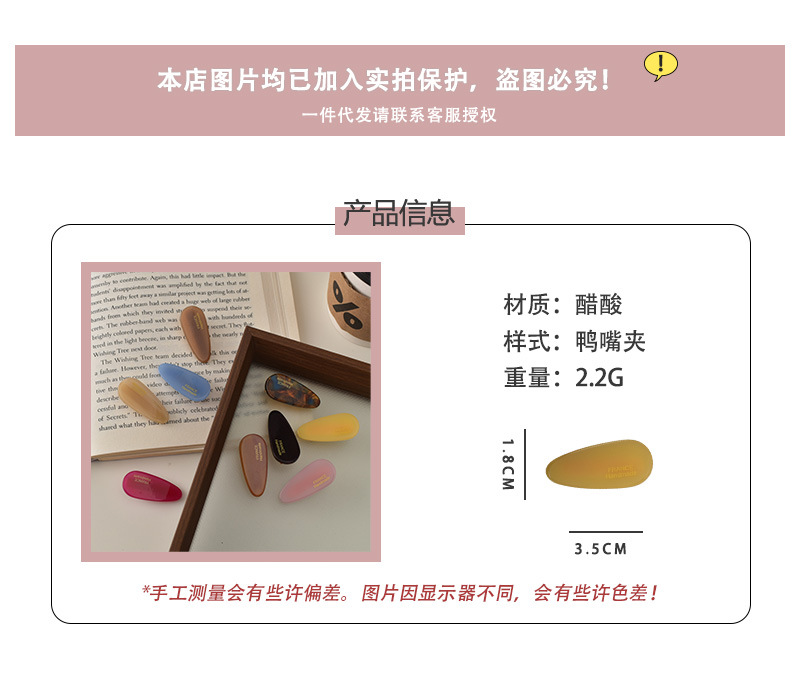 아세트산 물방울 머리핀 앞머리 클립 사이드 헤어핀 깨진 헤어 클립 사이드 클립 클립 헤어 액세서리 덕빌 클립 헤어 액세서리 머리 장식