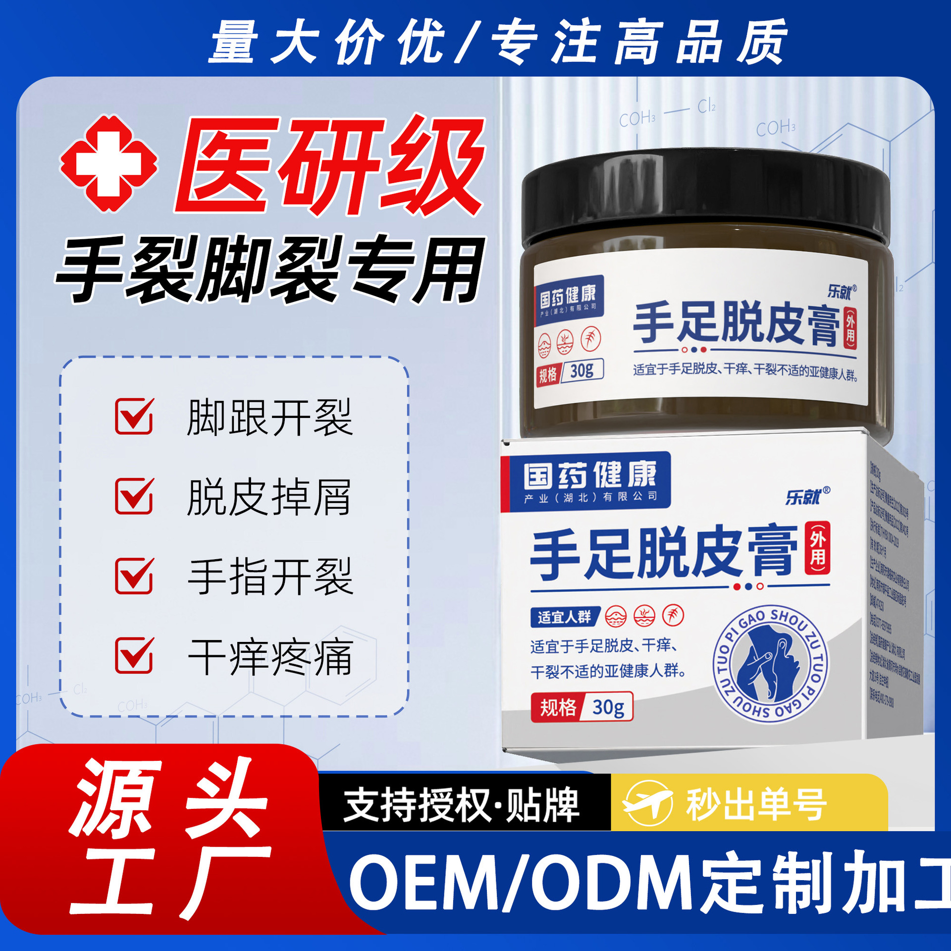 중국 의약품 건강 손발 각질 제거 보습 크림, 건조하고 갈라진 손발을 위한 보습 및 갈라짐 방지 핸드크림, 대량 판매 가능