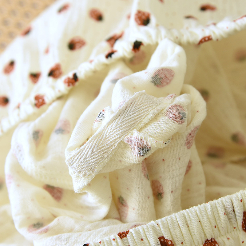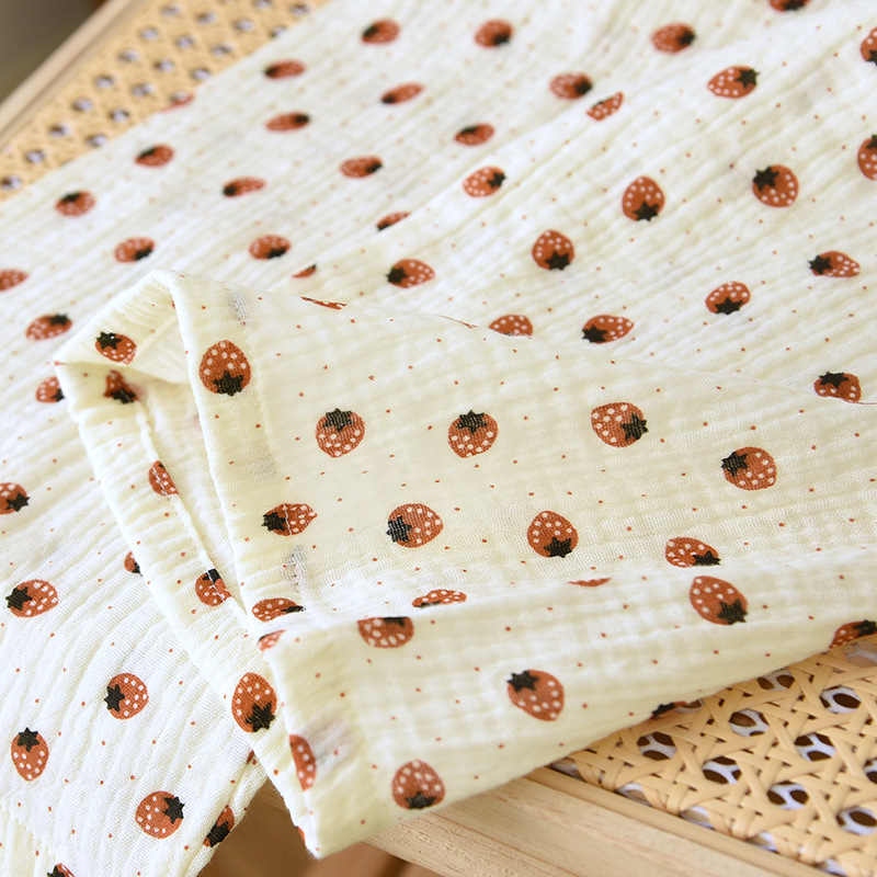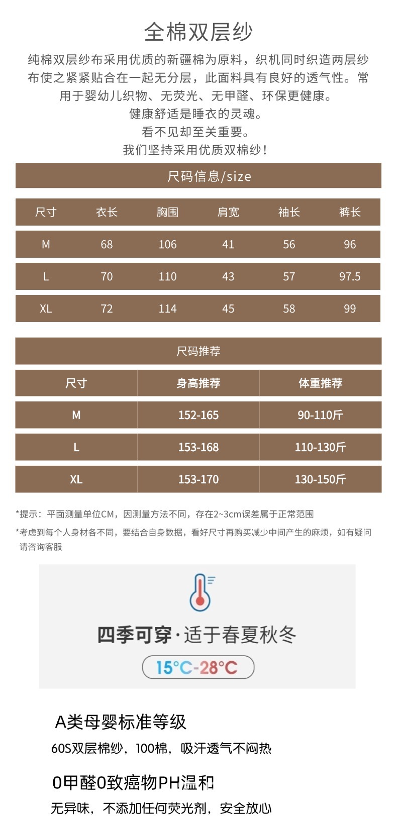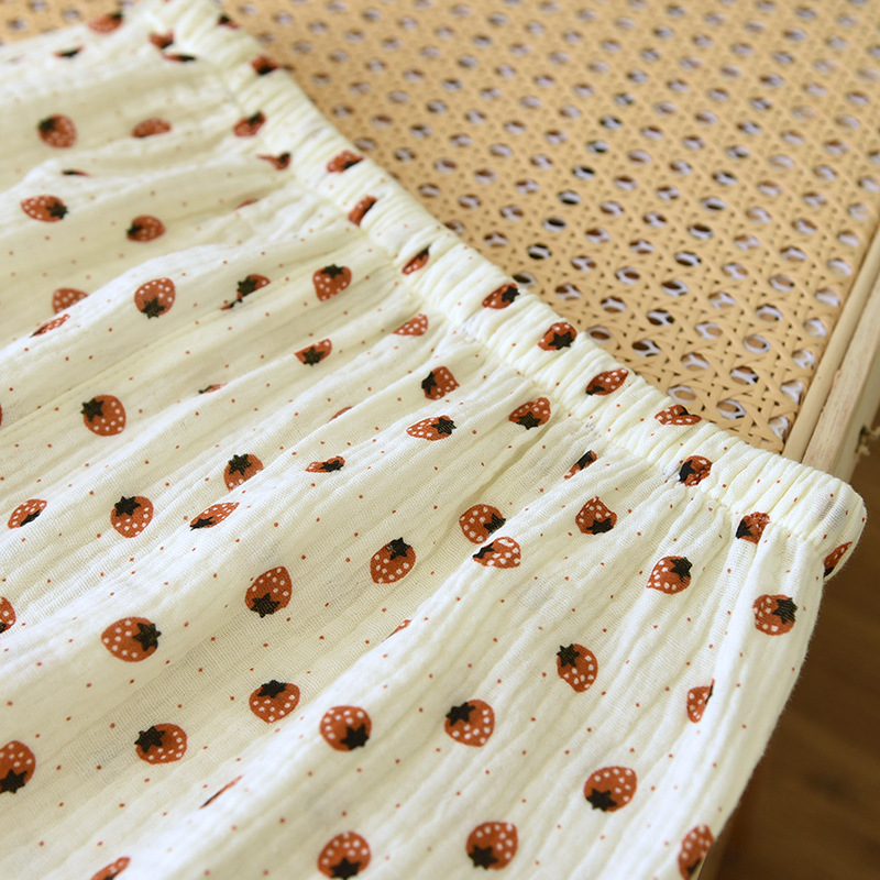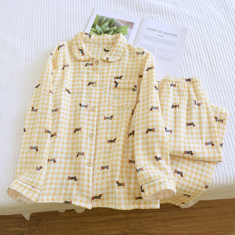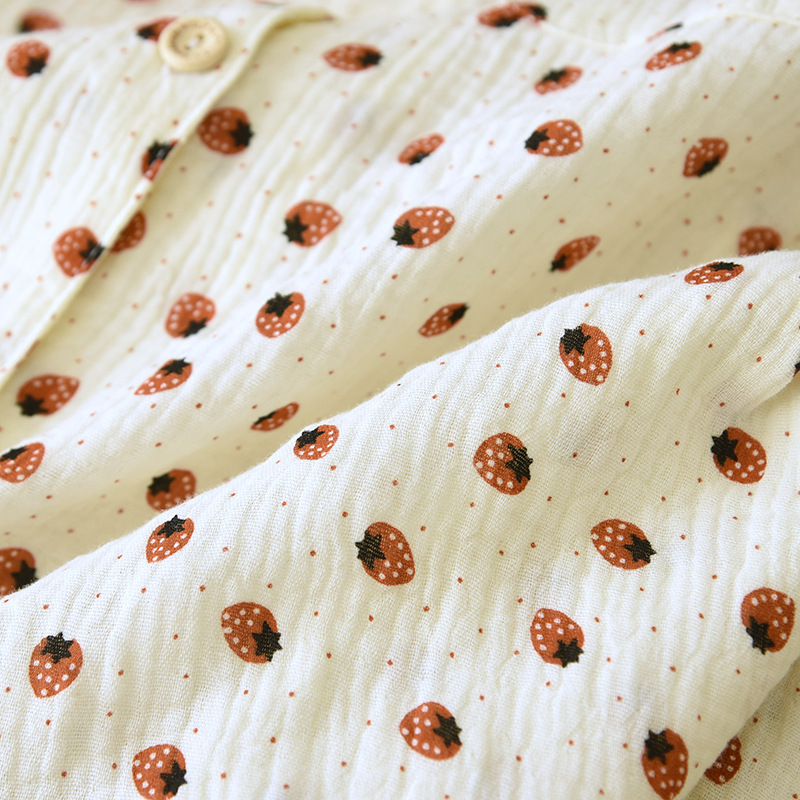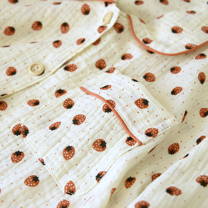 코튼 베이비 더블 레이어 크레이프 여성 홈 의류 잠옷 세트 캐주얼 통기성 얇은 느슨한 턴 업 칼라