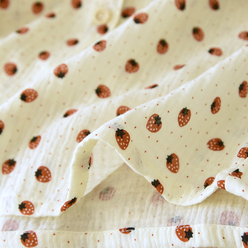 코튼 베이비 더블 레이어 크레이프 여성 홈 의류 잠옷 세트 캐주얼 통기성 얇은 느슨한 턴 업 칼라스토어 가기